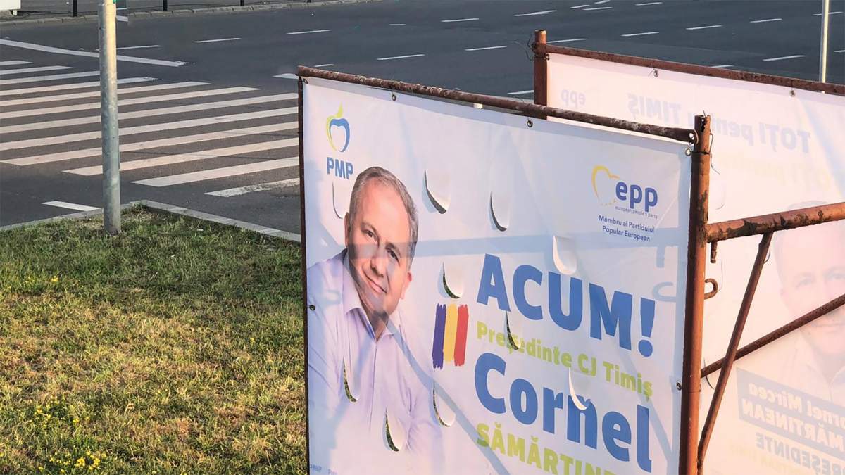 După ce nu am dat curs acestor presiuni, care au inceput cu telefoane și intrebări primite la ora 5 dimineața pe Whatsapp, am primit, ATENȚIE, tot pe Whatsapp, nu mai puțin de 40 de amenzi… Sper, din toată inima, că bănuiala mea să nu se adeverească și că dispariția acestor banere nu are legatură cu poliția locala sau cu angajați ai Primăriei Timișoara sau ai companiilor aflate în subordinea Primăriei Timișoara. Dacă se dovedește că banuiala mea este corectă și că  dispariția banerelor are legătură cu adminstrația locală, înseamnă că lucrurile sunt cu mult mai grave decât ne dăm seama… Înseamnă ca totul a fost orchestrat de Nicolae Robu, care, pe lângă faptul că (înca) este primarul orașului, este și candidat la alegerile locale, deci este și el competitor în competiția electorală. Ori prin implicarea în furtul acestor banere, în primul rând, este complice la fapte de natură penală, și în al doilea rând, și-a dezavantajat un competitor direct. Ori nu ai cum să și concurezi, dar să și stabilești regulile după care se concurează mai mult chiar să le schimbi după cum te avantajează pe tine mai mult”, a declarat Cornel Sămărtinean președintele PMP Timiș.