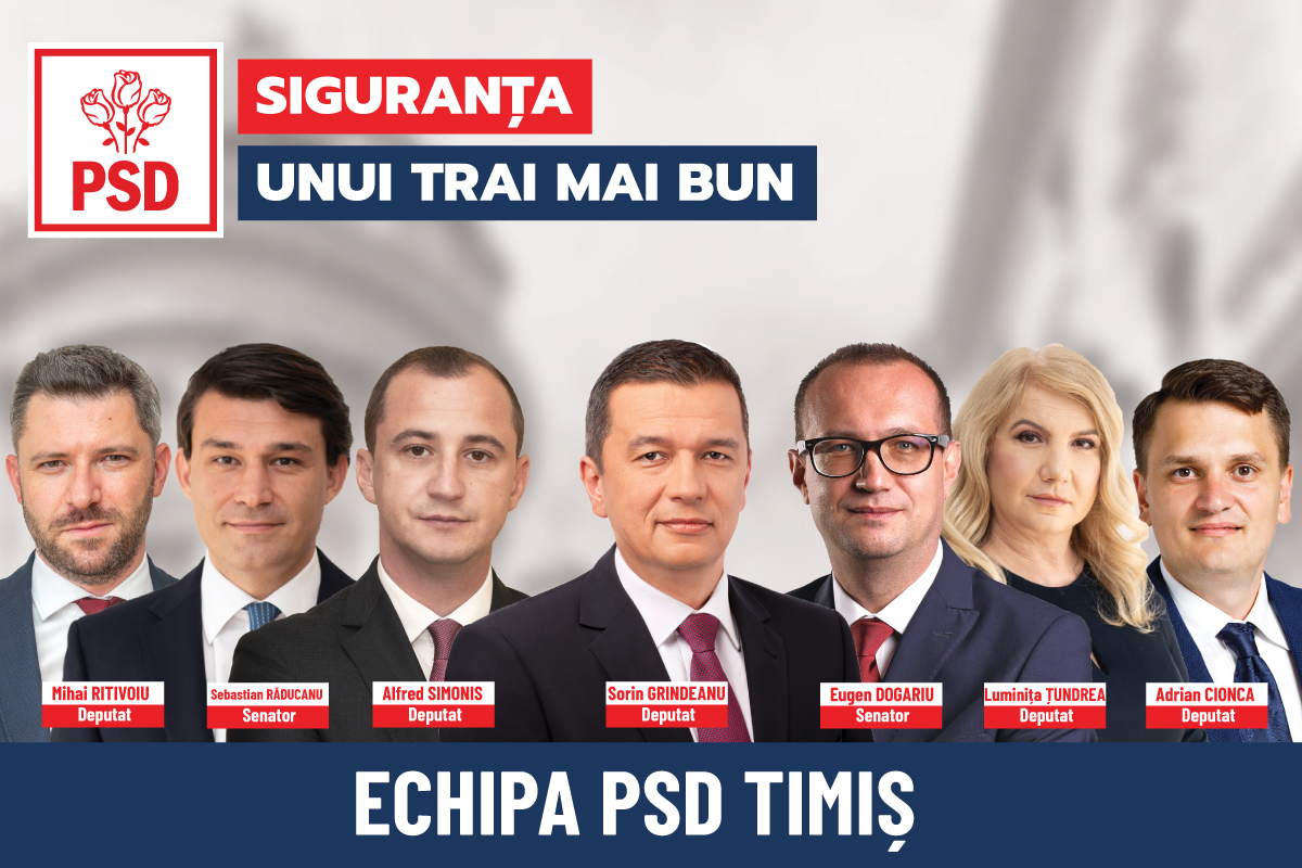PSD Timiș propune pentru alegerile parlamentare candidați care întrunesc cele mai exigente criterii: oameni cu experiență și cu pregătire în diverse domenii, profesioniști, tineri, integri, care nu sunt traseiști politici, și, cel mai important, toți bănățeni! Da, este esențial ca oamenii care reprezintă interesele acestui județ să fie oameni ai locului, să știe nevoile, să le înțeleagă și să le simtă ca fiind ale lor. Pentru toate acestea, candidații PSD Timiș sunt exact ceea ce trebuie.