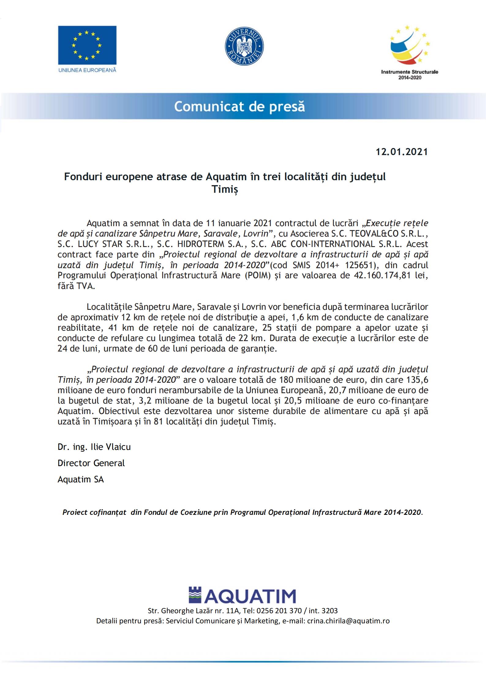 Investitii in Timisoara Fonduri europene atrase de Aquatim în trei localități din județul Timiș Investitii in TimisoaraSănătateȘtiri Locale Fonduri europene atrase de Aquatim în trei localități din județul Timiș De către redactia - 12/01/2021 FacebookTwitterWhatsAppLinkedinReddItEmailImprimare ARTICOLE SIMILAREDE LA ACELAȘI AUTOR Laboratoare inteligente la Colegiul Henri Coandă din fonduri europene Colegiul Tehnic „Henri Coandă” a finalizat un proiect PNRR pentru modernizarea laboratoarelor și atelierelor An record de investiții la Dumbrăvița: peste 44 de milioane de lei pentru dezvoltarea localității LĂSAȚI UN MESAJ Vă rugăm să introduceți comentariul dvs.! Introduceți aici numele dvs. Ați introdus o adresă de e-mail incorectă! Vă rugăm să introduceți adresa dvs. de e-mail aici Salvați numele meu, adresa de e-mail și site-ul web în acest browser pentru data viitoare i comentariu. Δ Acest site folosește Akismet pentru a reduce spamul. Află cum sunt procesate datele comentariilor tale. Urmărește-ne pe Social Media344,595FaniÎmi place4,416CititoriConectați-vă12,506CititoriConectați-vă1,500CititoriConectați-vă1,595CititoriConectați-vă3,506AbonațiAbonați-vă Carburanții s-au scumpit de la 1 ianuarie: cât costă benzina și motorina în Timișoara după noile accize redactia - 01/01/2026 Peste 1,7 milioane de vizitatori la Târgul de Crăciun din Timișoara redactia - 01/01/2026 Aeroportul „Traian Vuia” din Timișoara deschide anul 2026: primul avion aterizat în România, la ora 00:05 redactia - 01/01/2026 Autostrada A1 Margina – Holdea ajunge la 50%: tunelurile urșilor avansează, finalizarea rămâne planificată pe sfârșitul lui 2026 redactia - 01/01/2026 Timișoara întâmpină Anul Nou cu artificii lansate din Parcul Civic. Restricții de trafic în centrul orașului redactia - 31/12/2025