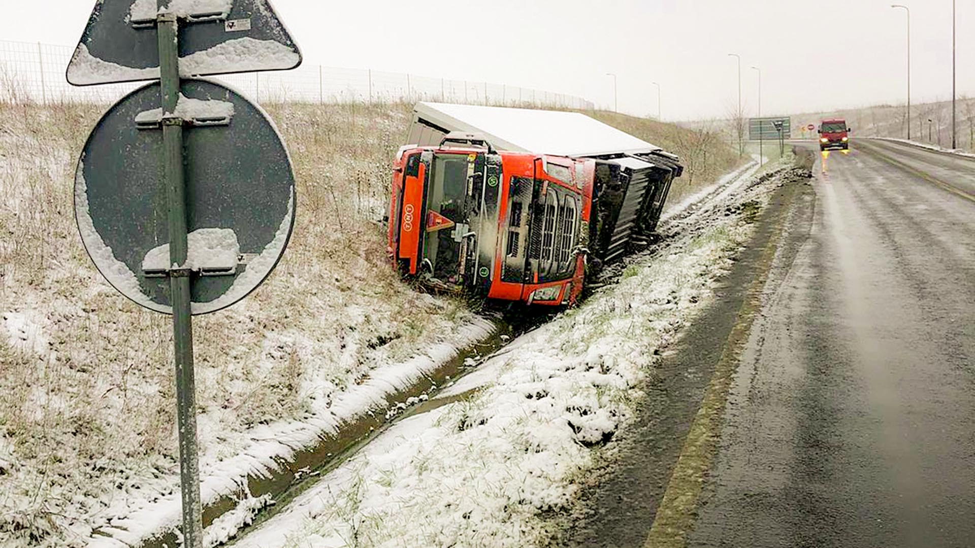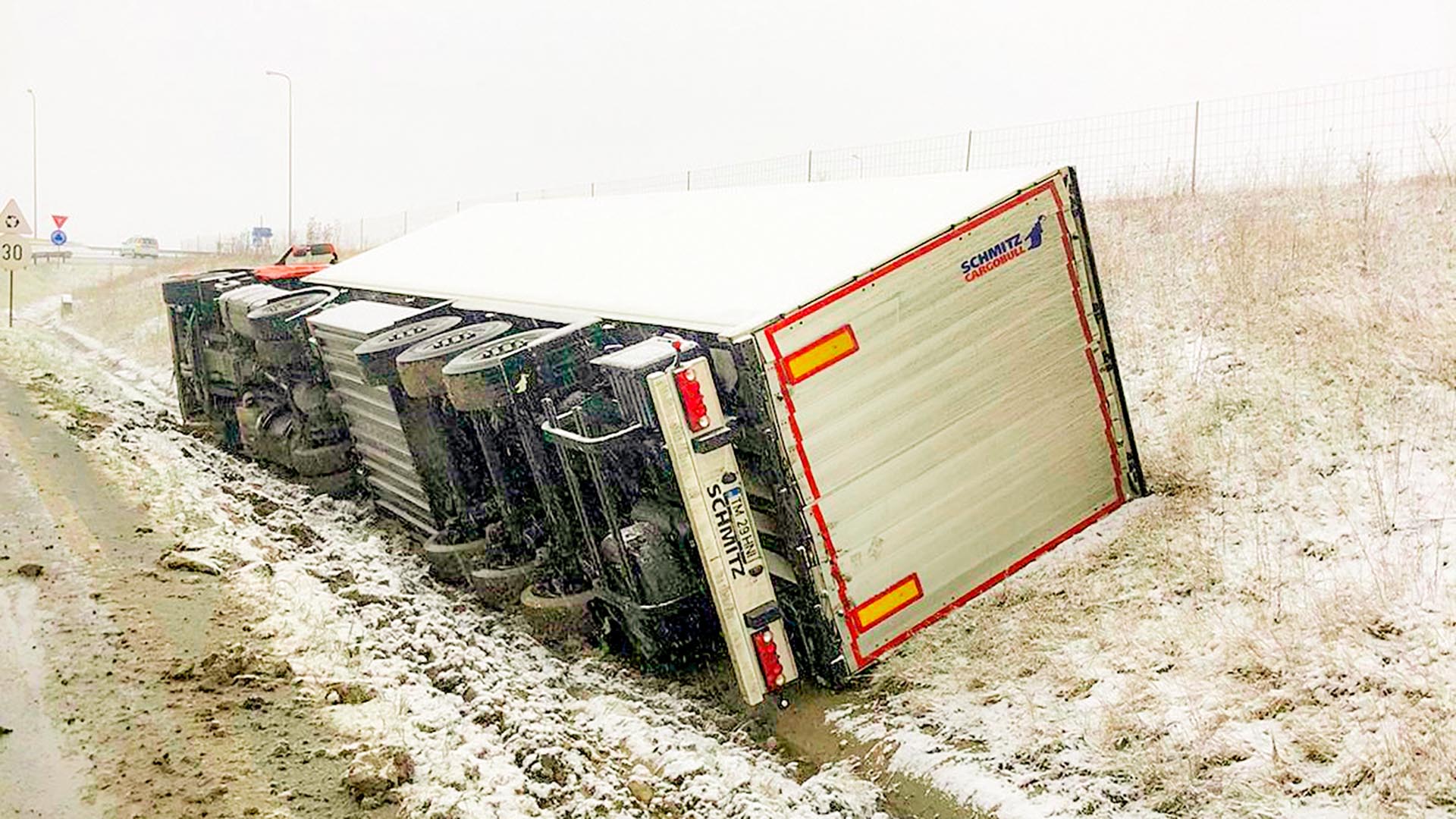 Accesul autovehiculelor a fost restricționat în nodul rutier Giarmata, de pe autostrada A1, pentru efectuarea procedurilor de ridicare a unui autotren răsturnat în afara părții carosabile.