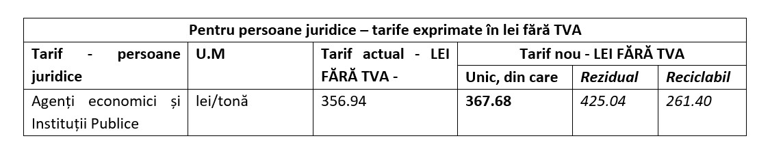 Propunerea de modificare a tarifelor unice pe categorii de utilizatori şi a tarifelor diferențiate (rezidual si reciclabil) pentru colectarea şi transportul deşeurilor municipale şi a deşeurilor similare a fost avizata favorabil de către Consiliul Director al ADID Timiș, noile tarife urmând a fi adoptate de către autoritățile deliberative a unităților administrativ-teritoriale din Zona 1 de colectare-transport a deşeurilor municipale din județul Timiș, precum și de AGA ADID, în vederea aplicării acestora.