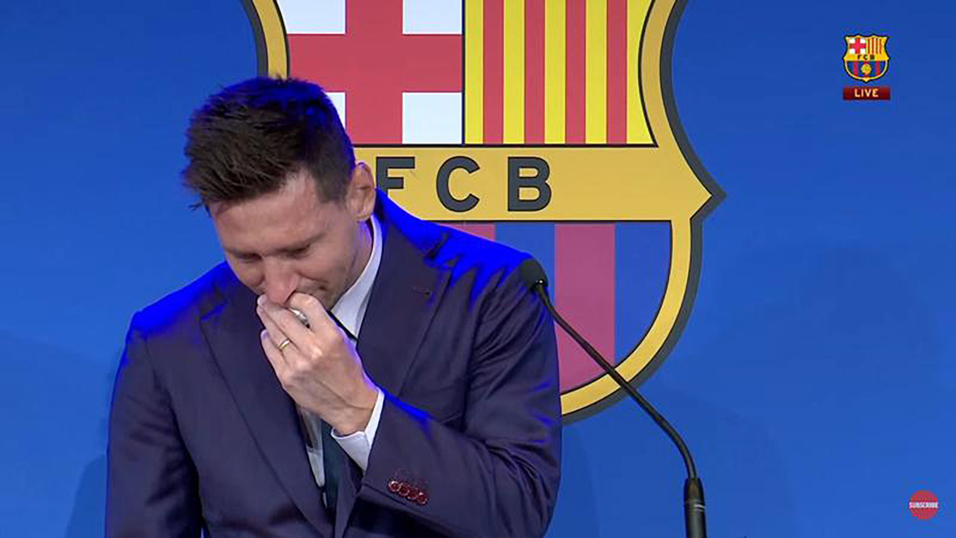 Lionel Messi a susținut duminică o conferința de presă în care a anunțat despărțirea oficială de FC Barcelona. Superstarul argentinian a surprins întreaga asistență atunci când a început sa plângă precum un copil în mai multe rânduri. Au fost momente emoționante, iar lacrimi au putut fi văzute și în ochii unora dintre (foștii de-acum) coechipieri.