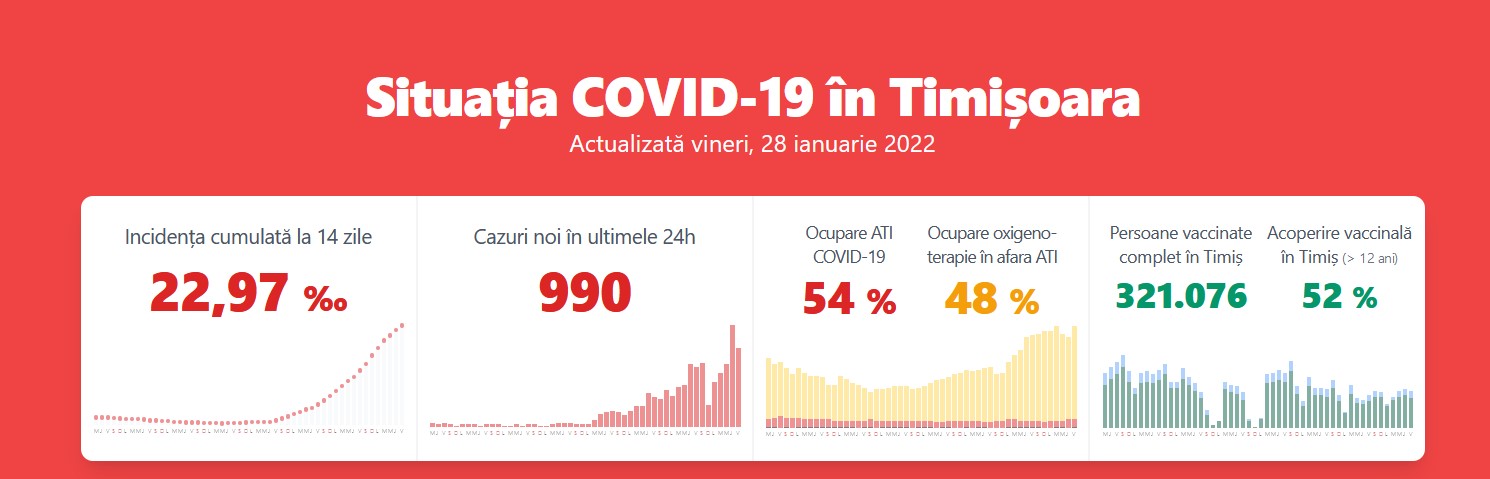 In ciuda faptului ca in Timisoara, practic, azi una din 50 de persoane are Covid-19, sectiile ATI Covid sunt incarcate doar la jumatate (54%) – o veste buna atat pentru medici cat si pentru autoritati, care, confruntate cu reducerea numarului de morti vor trebui sa renunte la starea de alerta. Lucru cerut tot mai insistent de majoritatea cetatenilor romani si europeni.