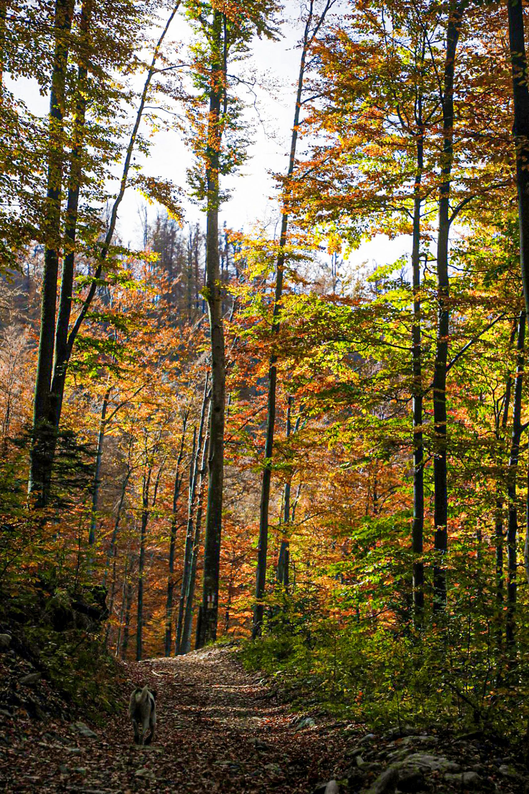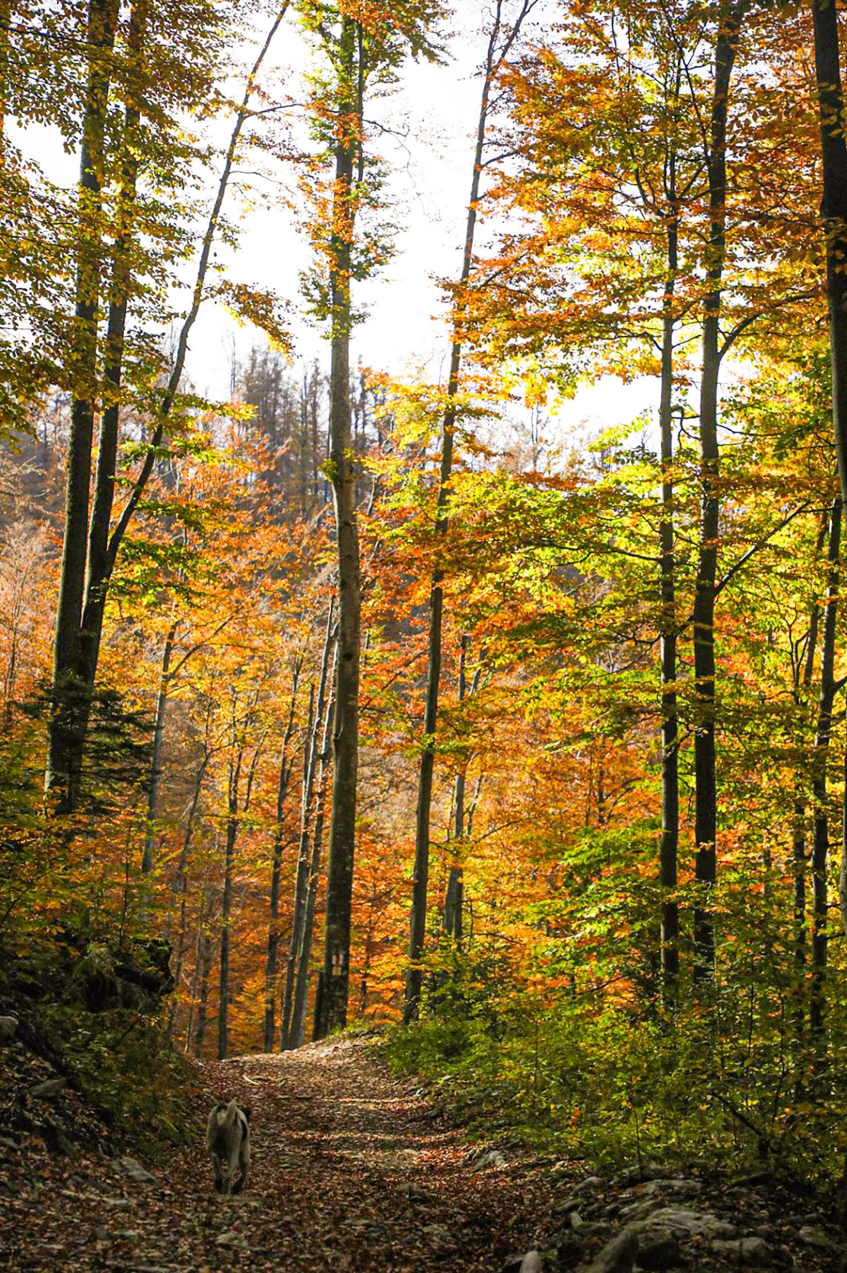 prin pădure.