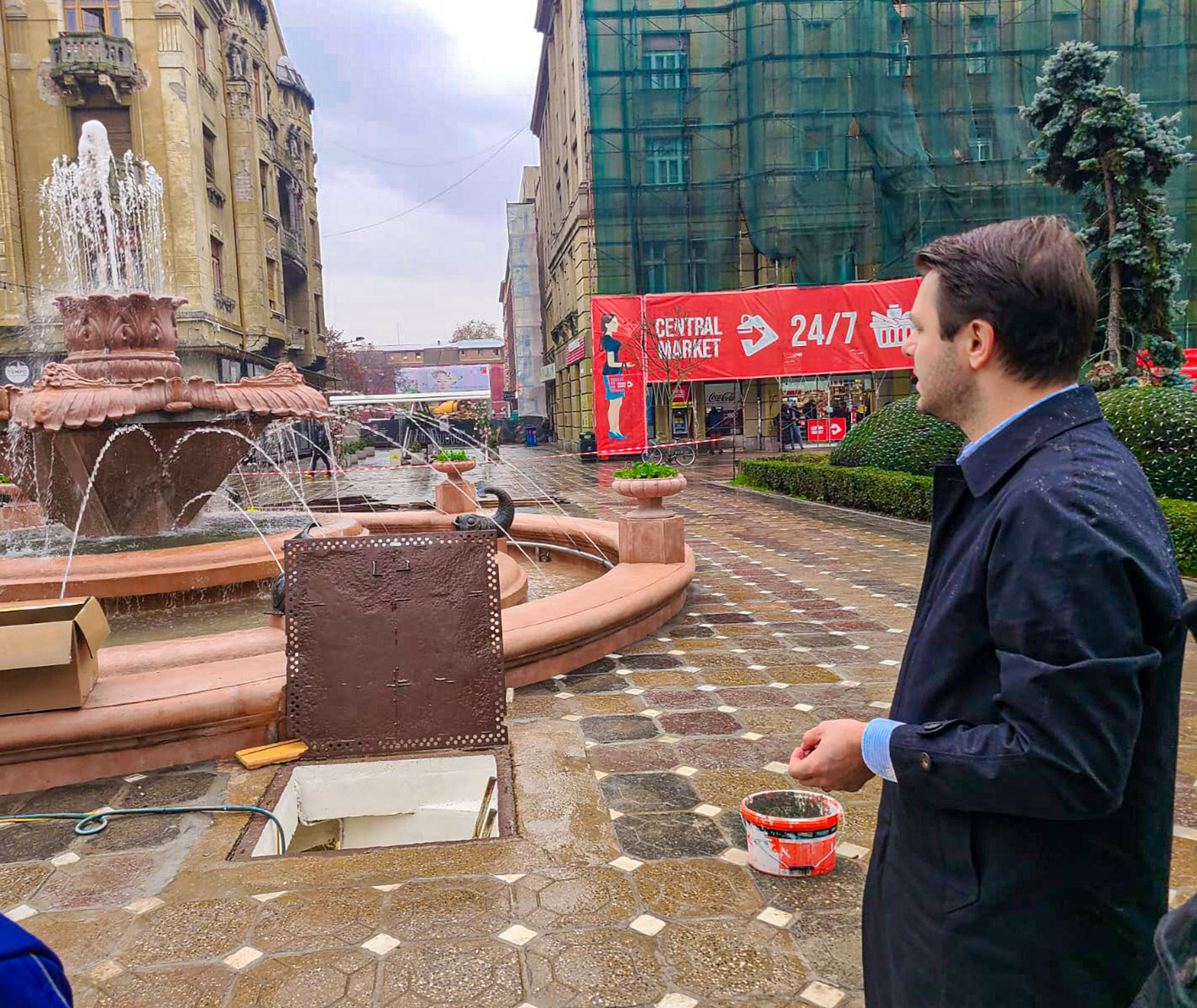 „Închidem ultimul proiect preluat în stadiu de abandon. La fel ca fațada Operei, fântâna cu pești era un șantier lăsat de izbeliște. După discuții lungi și dure, constructorul a înțeles că nu există spațiu de negociere, iar lucrările au fost reluate.