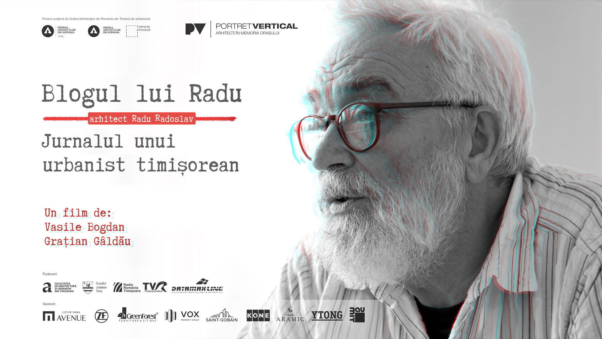 Arhitectul și urbanistul Radu Radoslav este convins mai departe că „omul este mai important decât clădirea iar comunitatea mai importantă decât orașul.”Vă învităm să vizualizați întreaga poveste într-o nouă întâlnire din seria „Portret vertical –arhitecți în memoria orașului”, sâmbătă, 19 noiembrie, începând cu ora 17:00, în Sala Multifuncțională a Consiliului Județean Timiș. Regia filmului aparține lui Vasile Bogdan și Grațian Gâldău