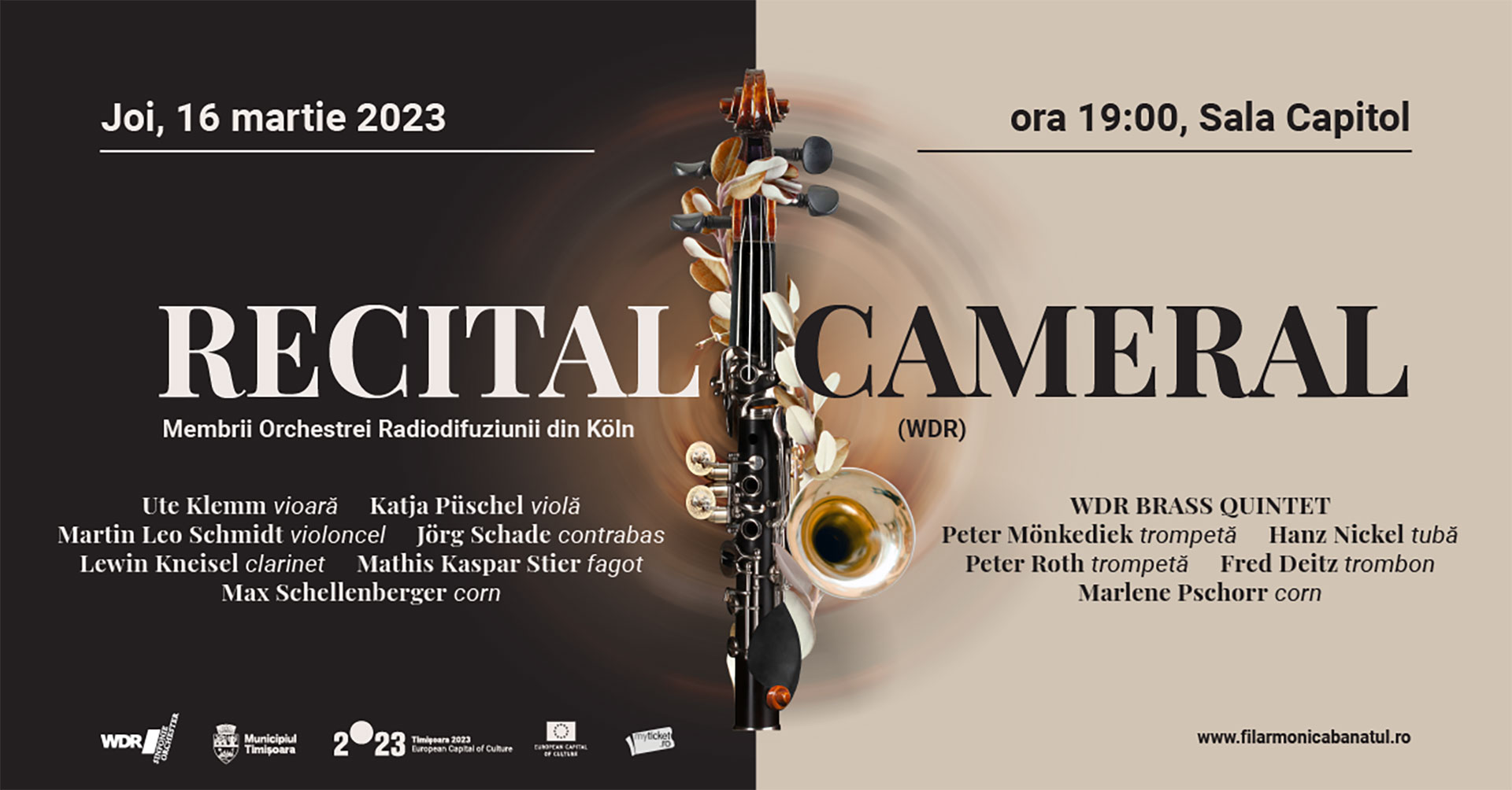 - Recital cameral | Membrii Orchestrei Radiodifuziunii din KÖLN (WDR) – 16 martie, orele 19:00, Sala Capitol a Filarmonicii Banatul Timișoara;