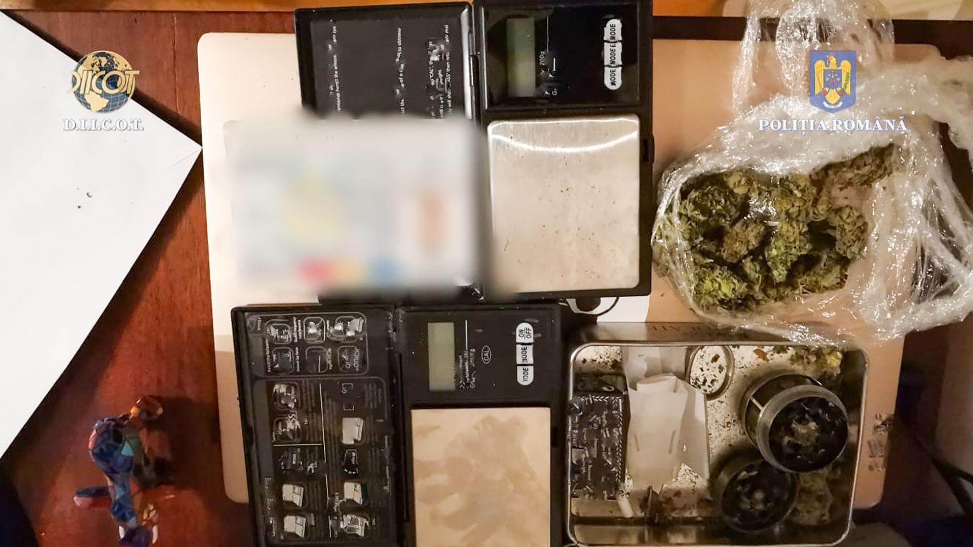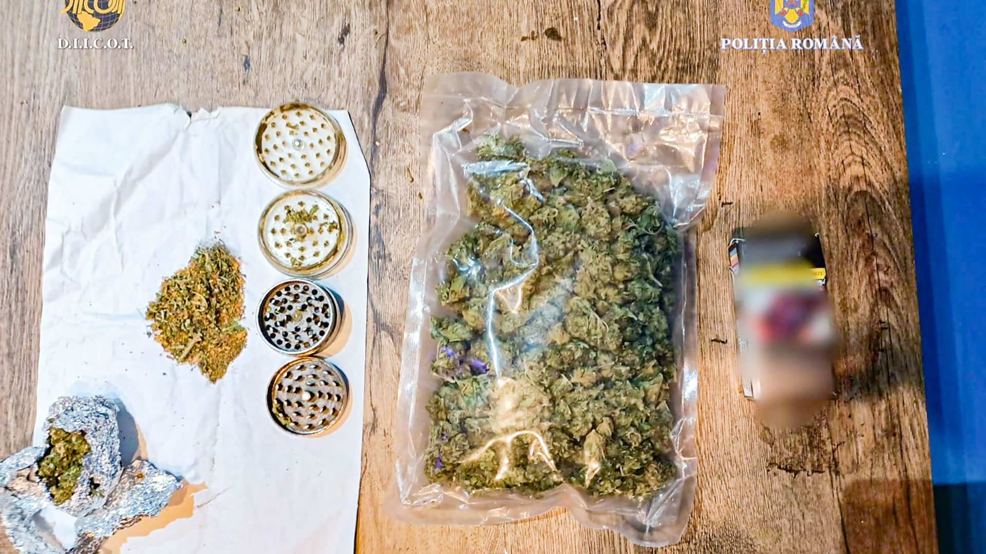 În urma perchezițiilor domiciliare, au fost descoperite diverse cantități de droguri, fiind ridicate peste 140 de grame de cannabis, 100 de grame de hașiș, un flacon din plastic cu lichid susceptibil a conține substanțe care produc efecte psihoactive, 6 grindere, 3 cântare și 6 telefoane mobile.
