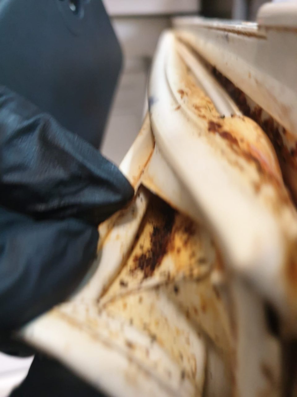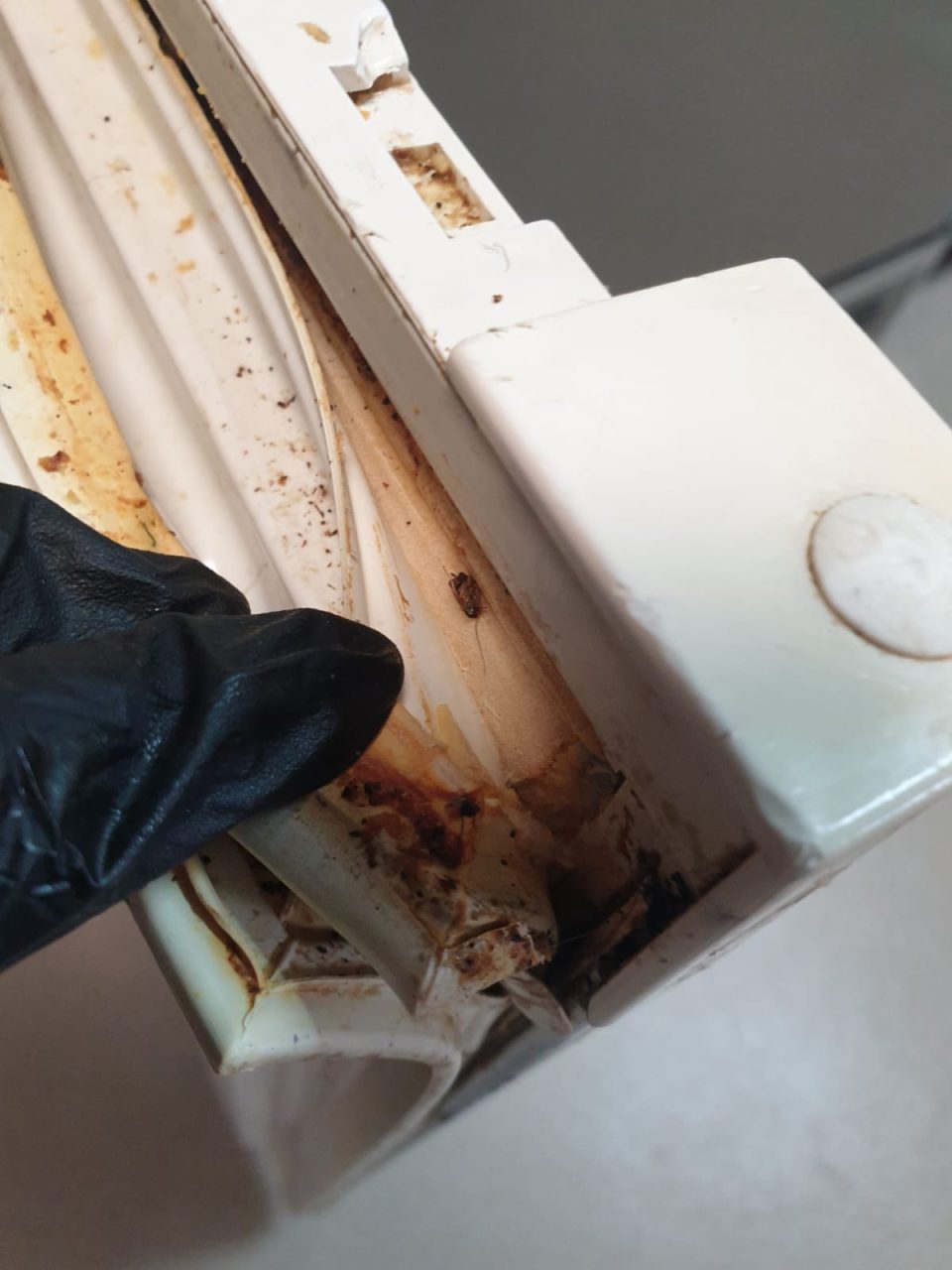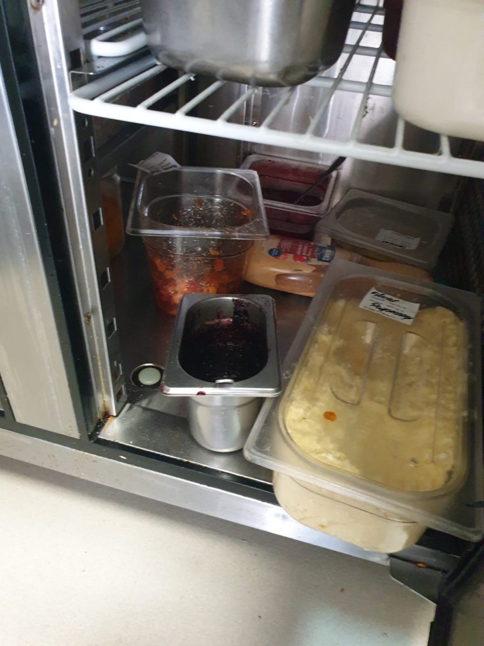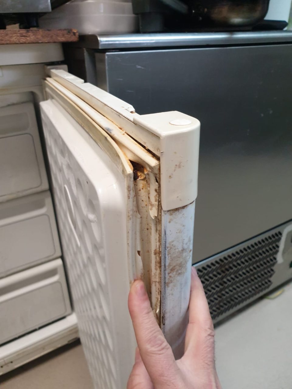-agregate frig neigienizate corespunzător, cu mânere rupte, gheață în exces, chedere rupte cu rugină și insecte vii pe partea superioară.