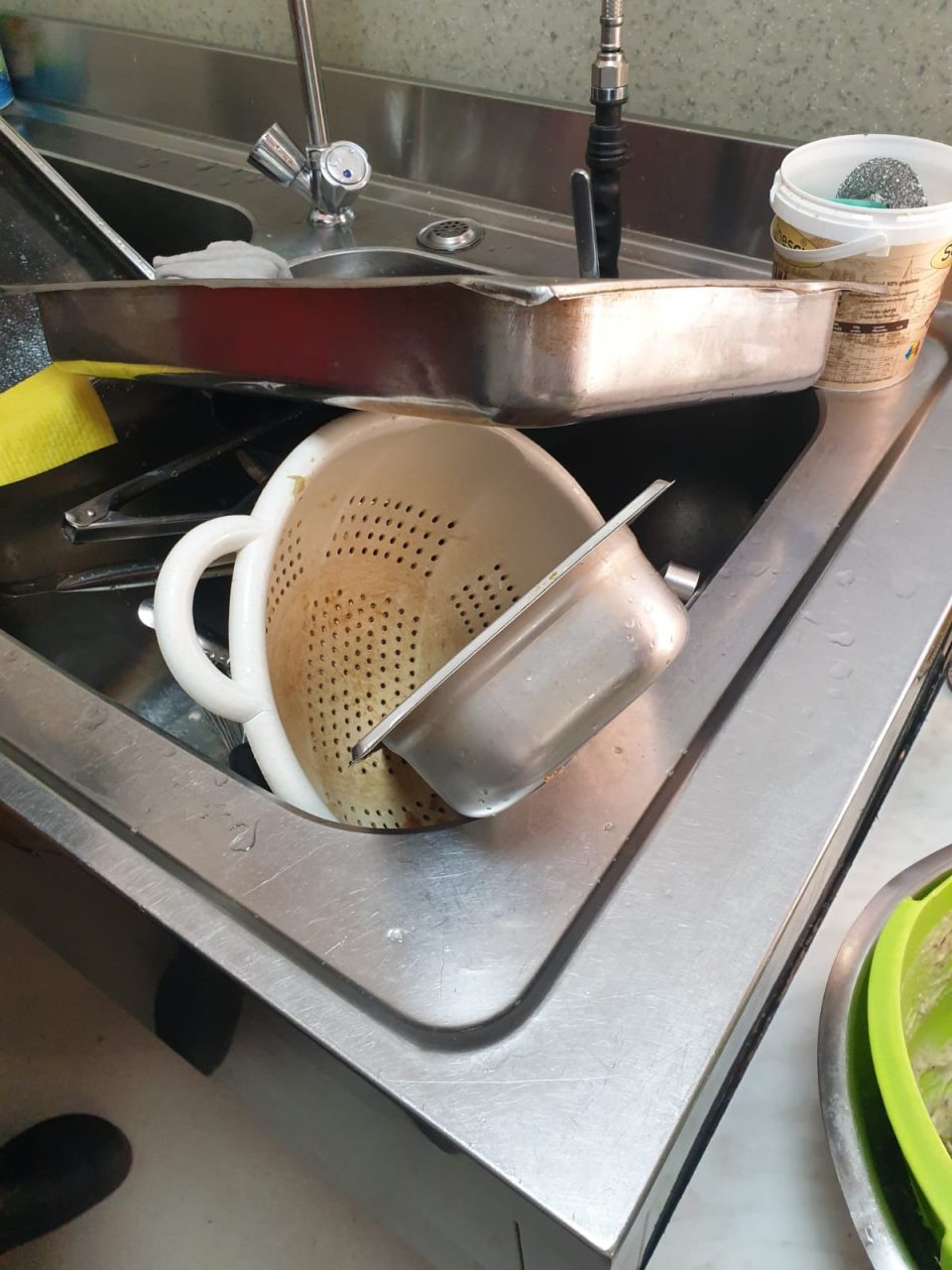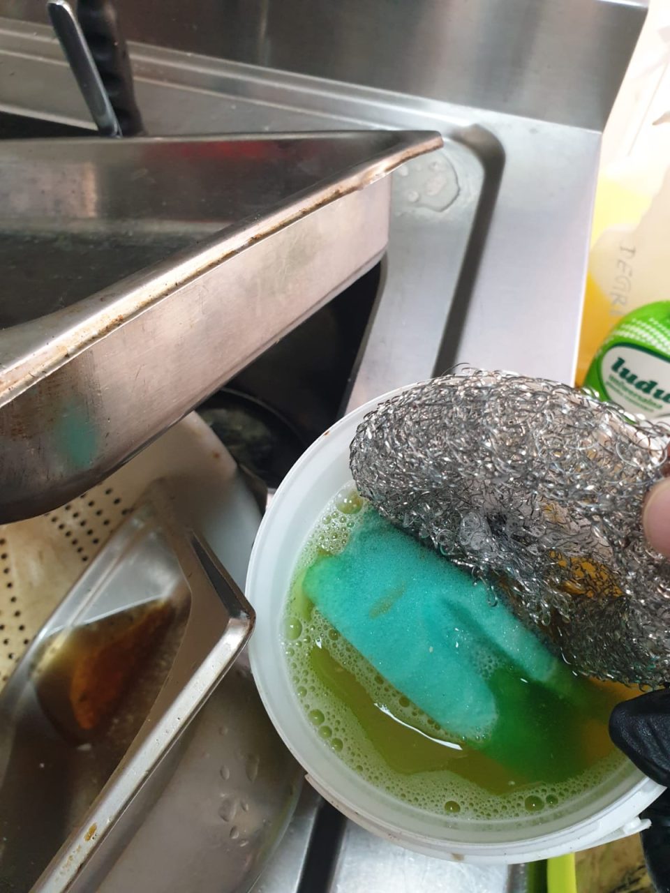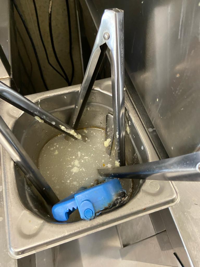 -aparatură neigienizată corespunzător, cu urme întărite de grăsime și resturi alimentare
