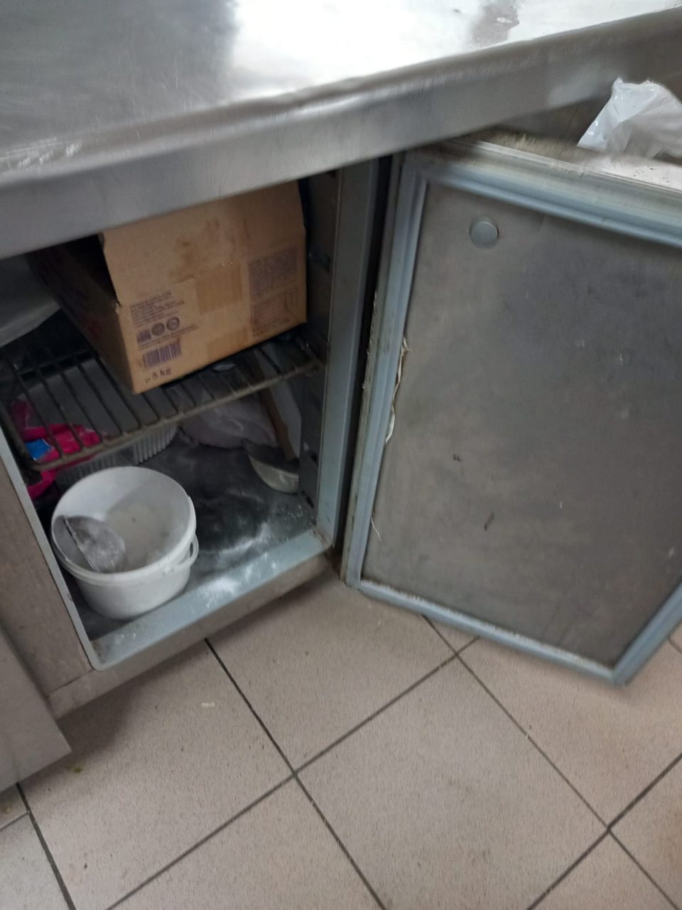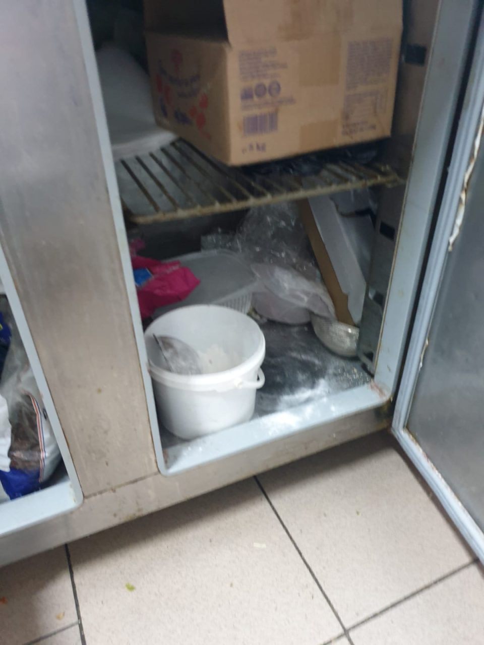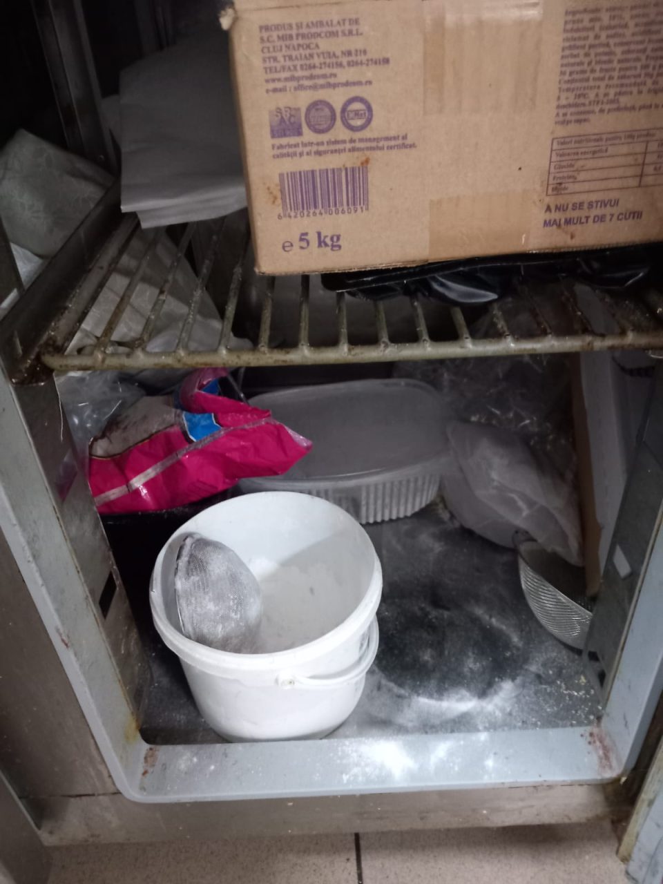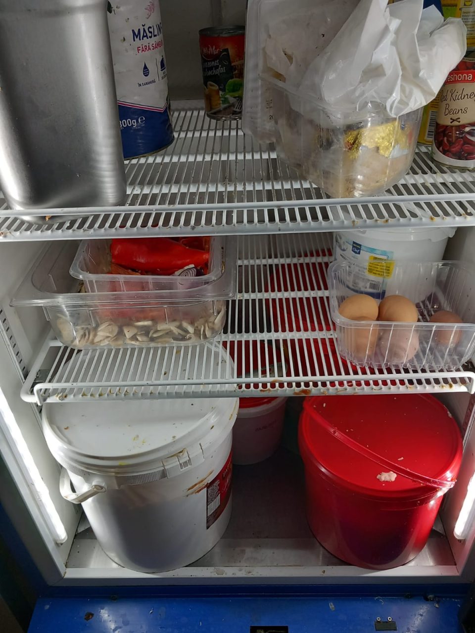 -răcitor pentru băuturi răcoritoare utilizat la depozitarea alimentelor -tocătoare arse, neigienizate, cuțite cu manere de plastic și nituri cu depuneri, ouă cu urme biologice(excremente).