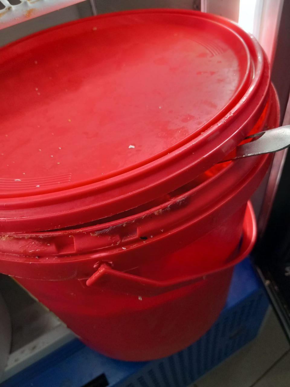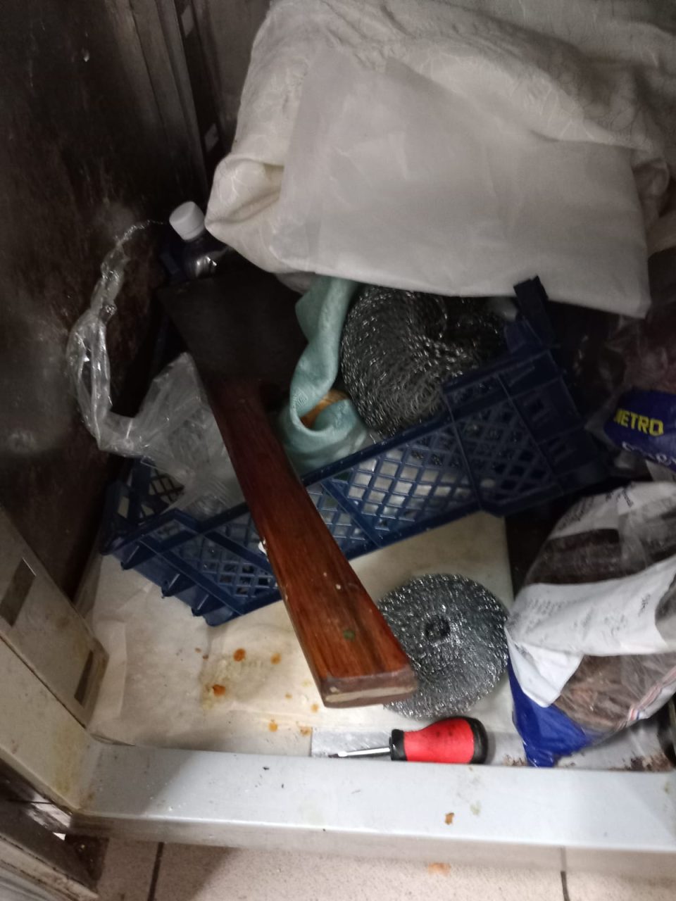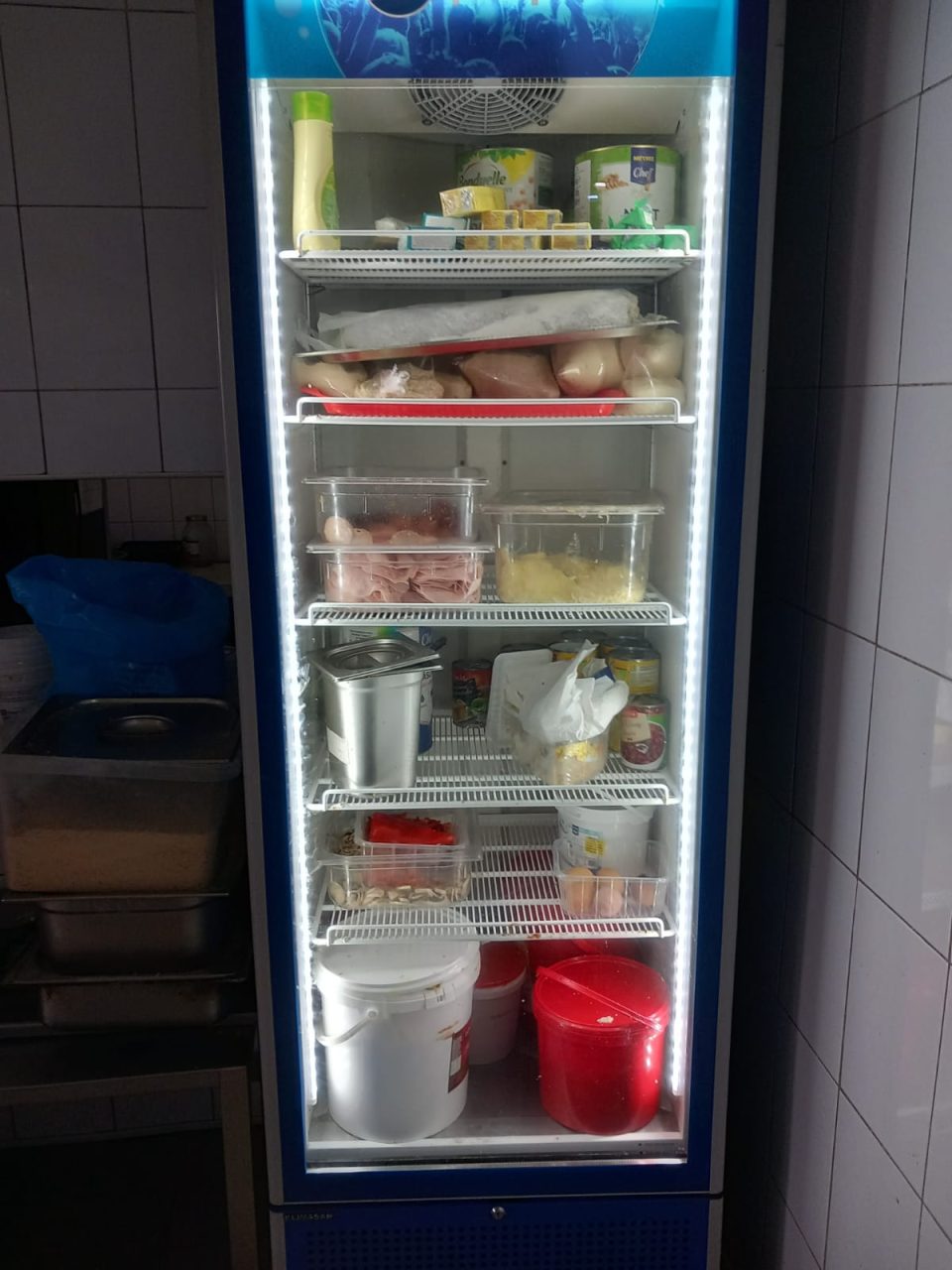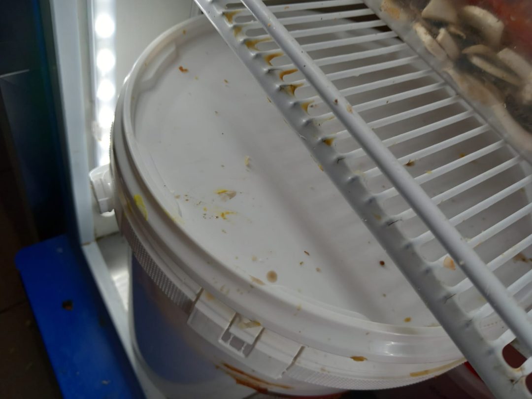 -răcitor pentru băuturi răcoritoare utilizat la depozitarea alimentelor -tocătoare arse, neigienizate, cuțite cu manere de plastic și nituri cu depuneri, ouă cu urme biologice(excremente).