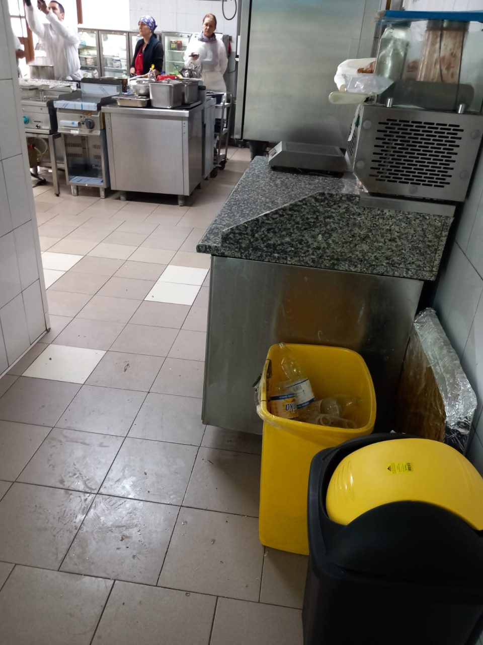 -atat în zona blocului alimentar cat și la bar nu există coșuri de gunoi acoperite, iar pentru spălarea veselei se utilizeaza detergent pentru vase – pasta pentru uz casnic(nu pt uz comercial)