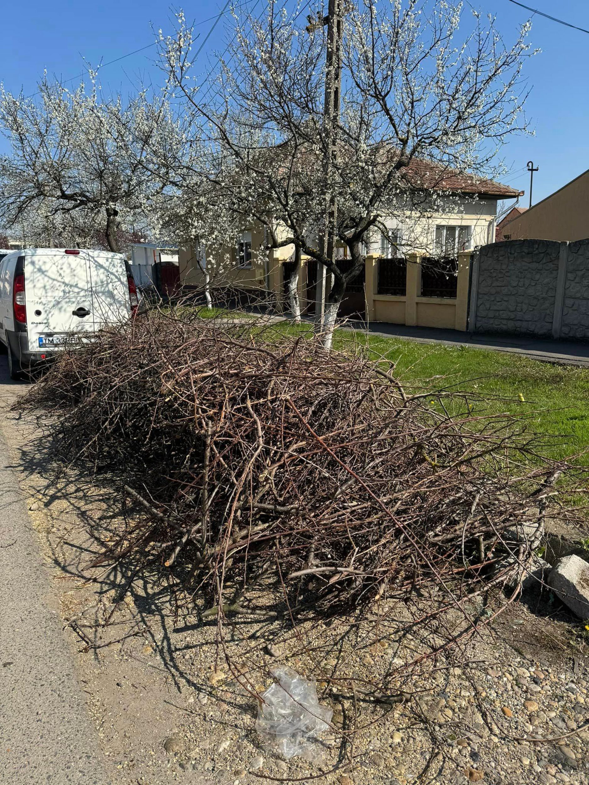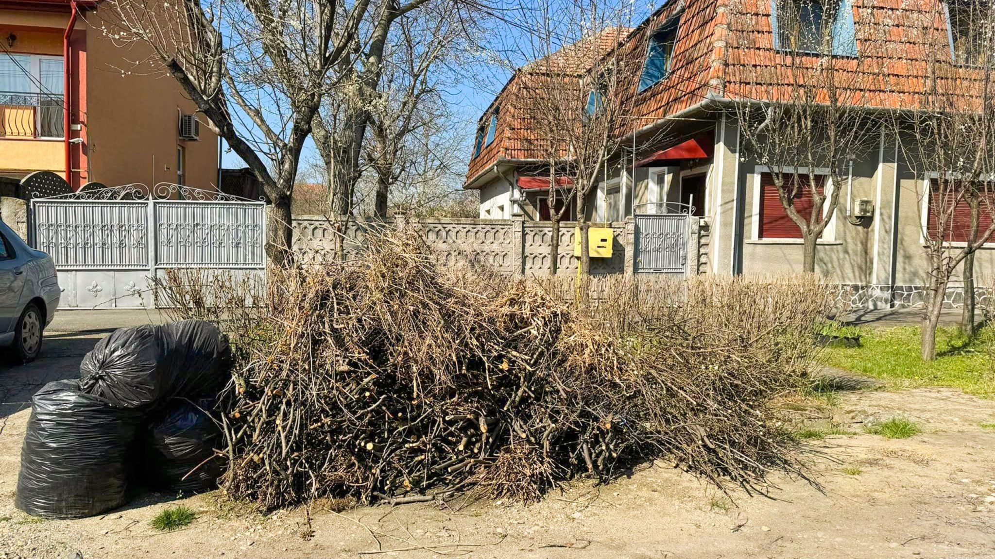 „De trei săptămâni, le văd zilnic” spune Roxana Iliescu referindu-se la resturile vegetale depozitate pe marginea trotuarelor din Mehala, cartier al Timișoarei.