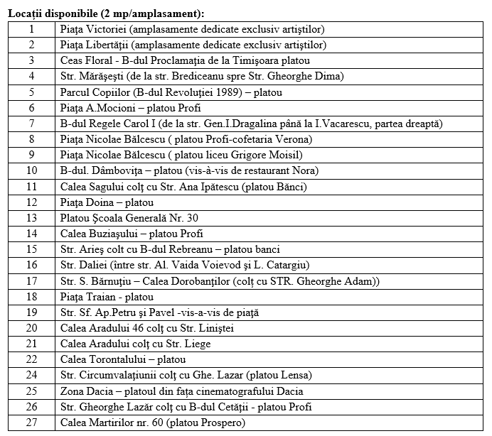 ✔️ Pentru comercianții din Piața Victoriei și Piața Libertății, este necesar un document doveditor privind statutul de artist, un memoriu privind modalitatea de producere a mărțișoarelor și o simulare fotografică a exponatelor.