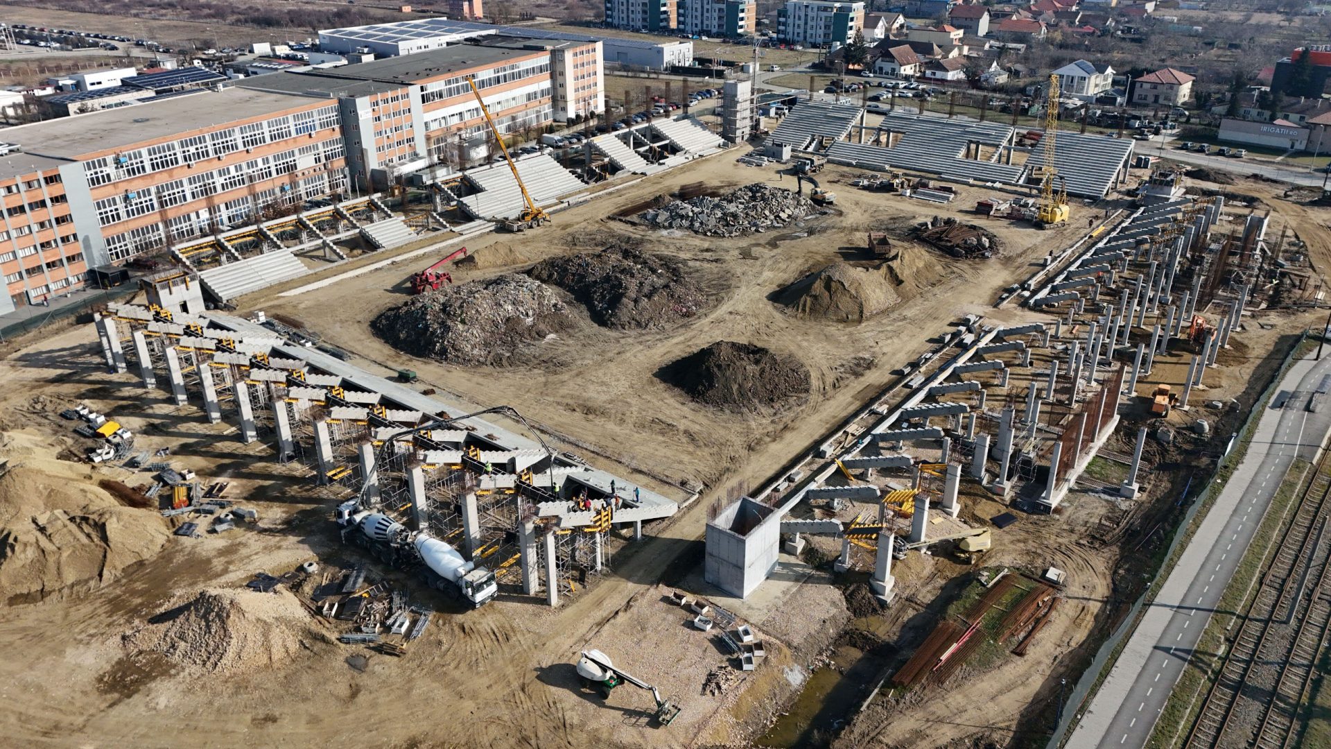 Mai bine de o treime din stadionul Arena Eroii Timișoarei, pe care Primăria Timișoara îl construiește în Calea Buziașului, a fost realizată. Municipalitatea a prioritizat plățile pentru noul stadion, iar lucrările avansează în ritm susținut, fără întârzieri.