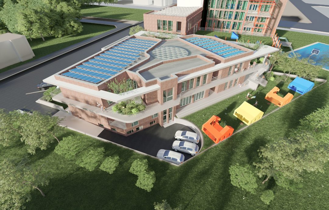 Pentru grădiniță este conceput un sistem de pompe de căldură care asigură încălzirea și răcirea clădirii, ventilația realizându-se printr-un sistem automatizat, cu control al calității aerului. Dotările includ și un sistem de 124 de panouri fotovoltaice ce aduc clădirea în zona consumului zero, la nivelul unui an.