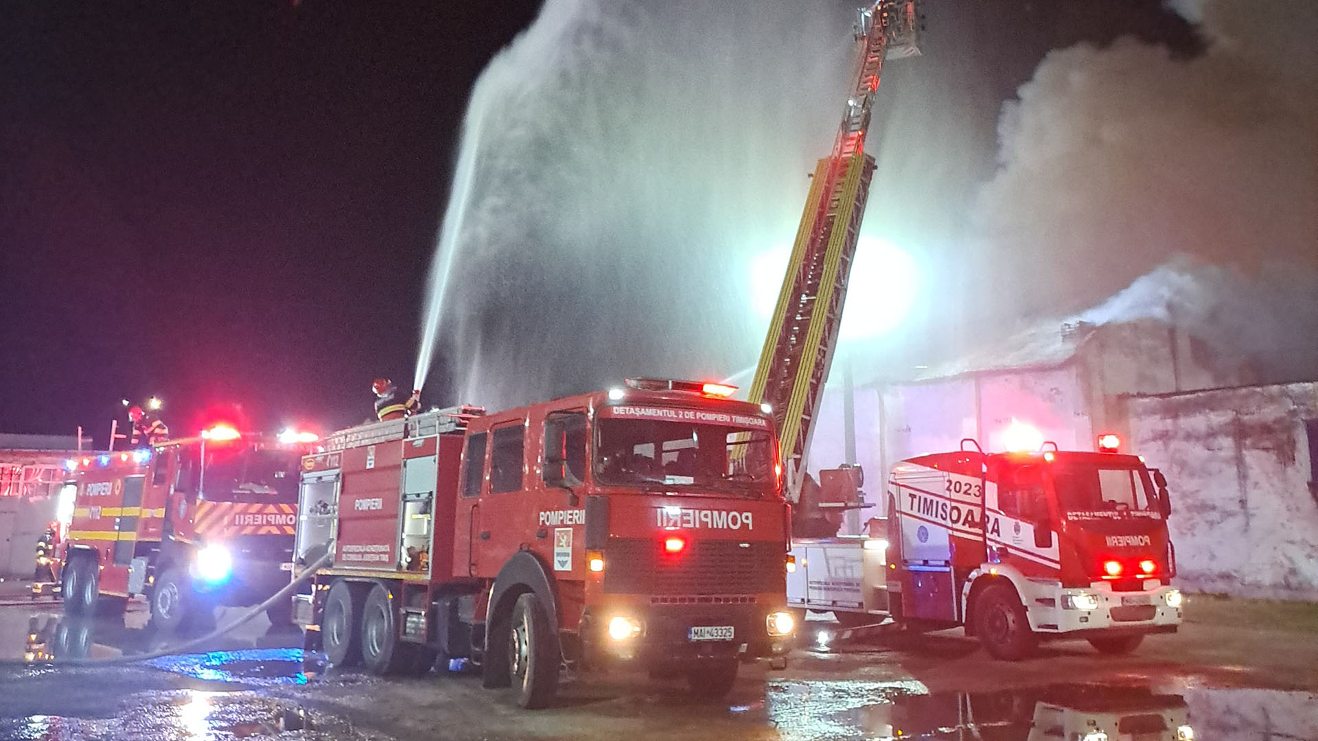 Aproximativ 60 de pompieri timișeni acționează cu 13 autospeciale de stingere, 2 autocisterne de 30.000 litri, o autoscară mecanică și un echipaj SMURD. Nu se înregistrează victime.