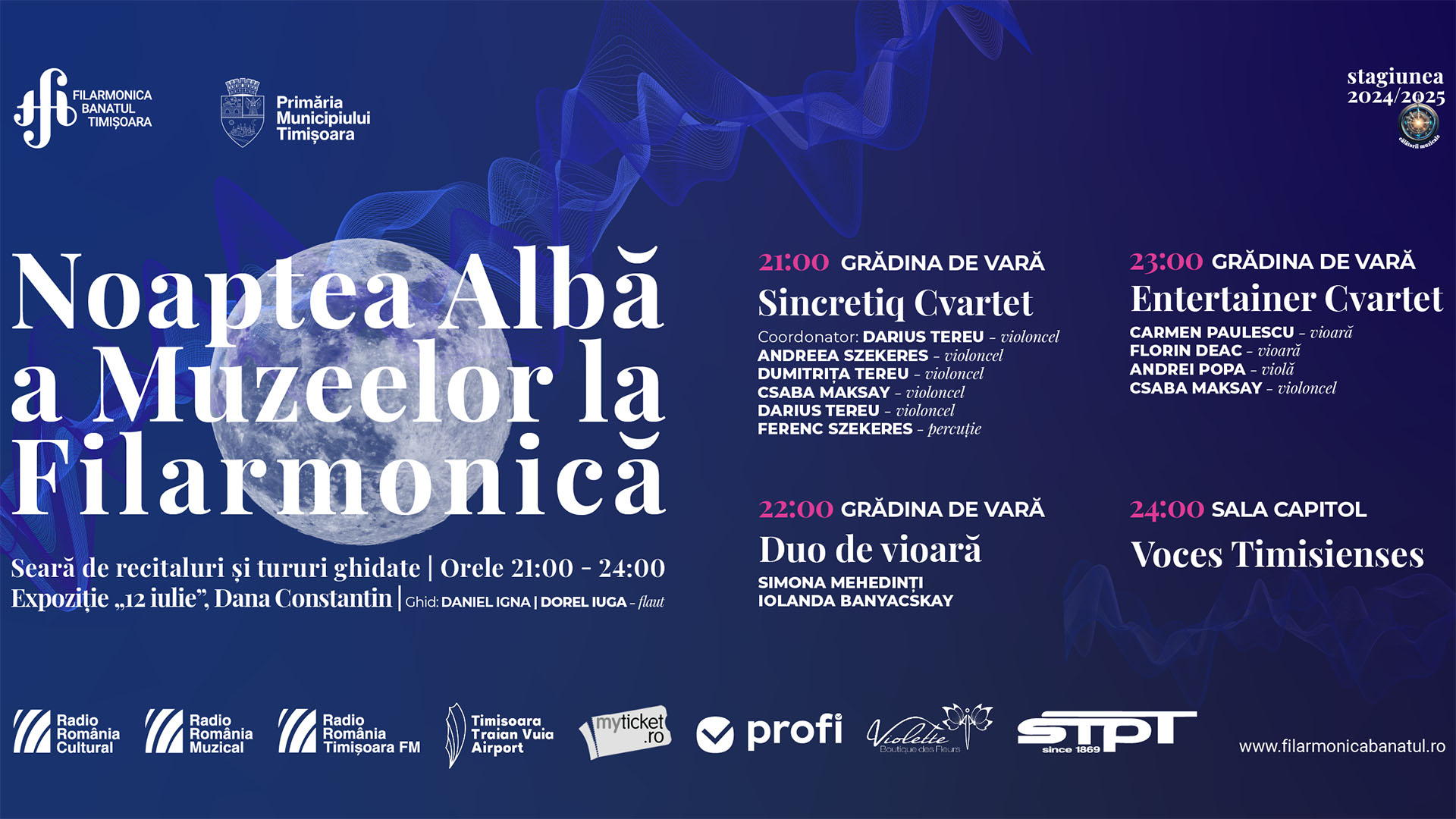 După un nou tur ghidat, vizitatorii vor putea asculta un alt recital, începând cu ora 23:00. Atunci, vor urca pe scena Grădinii de Vară violoniștii Carmen Paulescu, Florin Deac și Andrei Popa și violoncelistul Csaba Maksay.