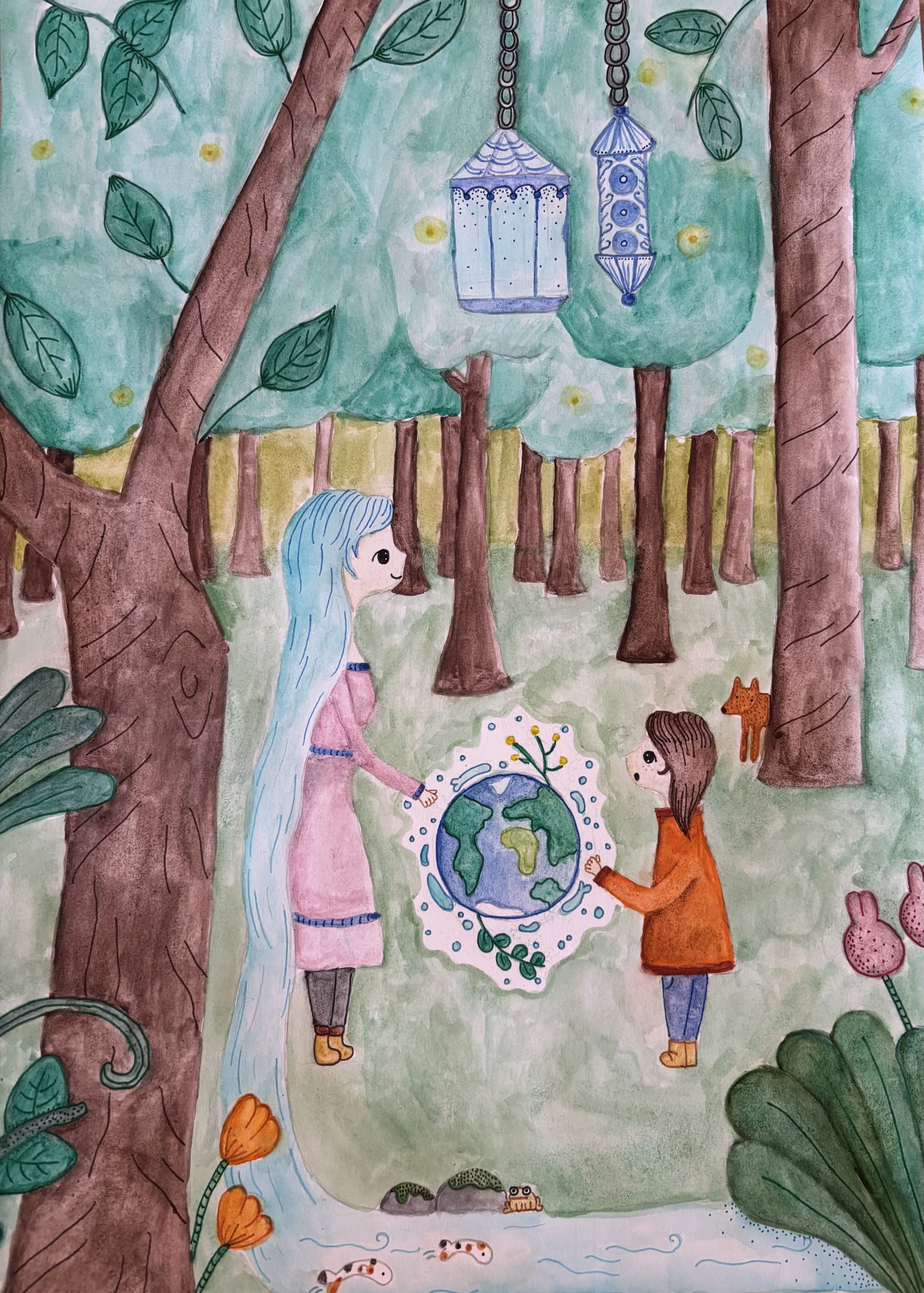 • Darul apei, categoria desen, 10-12 ani, autor Sara Csordas, 11 ani, Școala Babel Timișoara, profesori coordonator Brigitta Almasi;