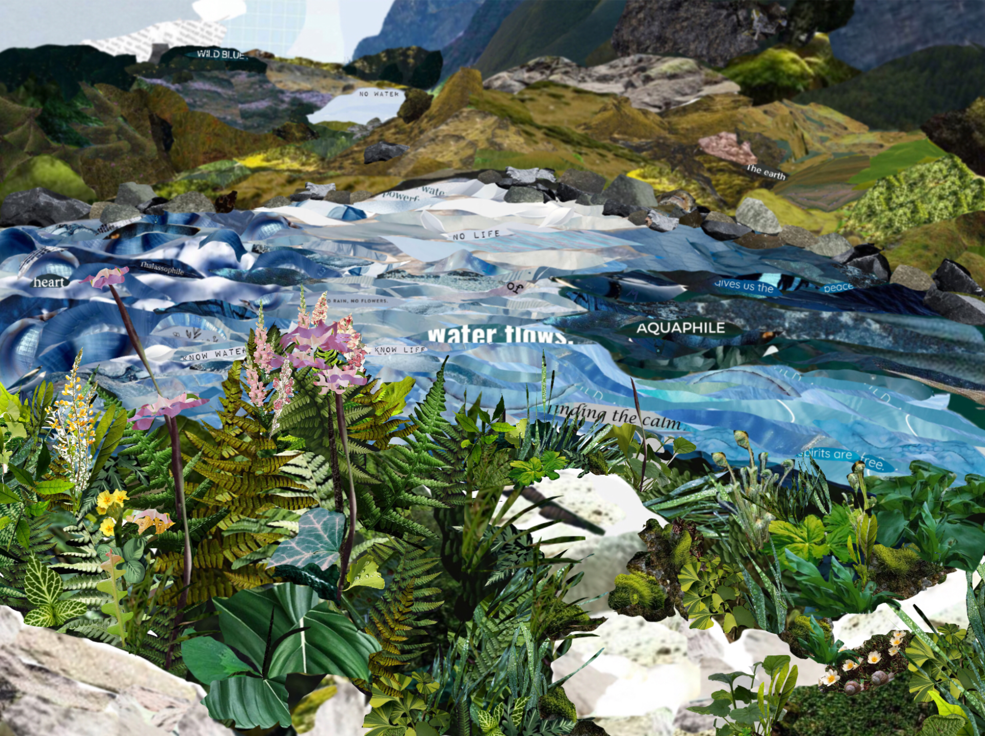 Nu în ultimul rând, colajul digital, realizat de tânăra Dariu Grigoriu din Hațeg, ne aduce în atenție cel mai mare lac glaciar din România, Bucura. Autoarea creează un peisaj vibrant printr-o tehnică inovativă, folosindu-se de culoare fotografie, ilustrație și tipografie, cu un accent clar pe apă și relația acesteia cu viața și natura.