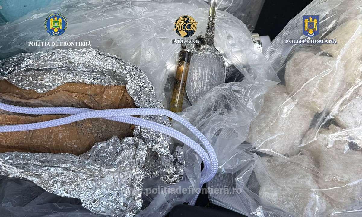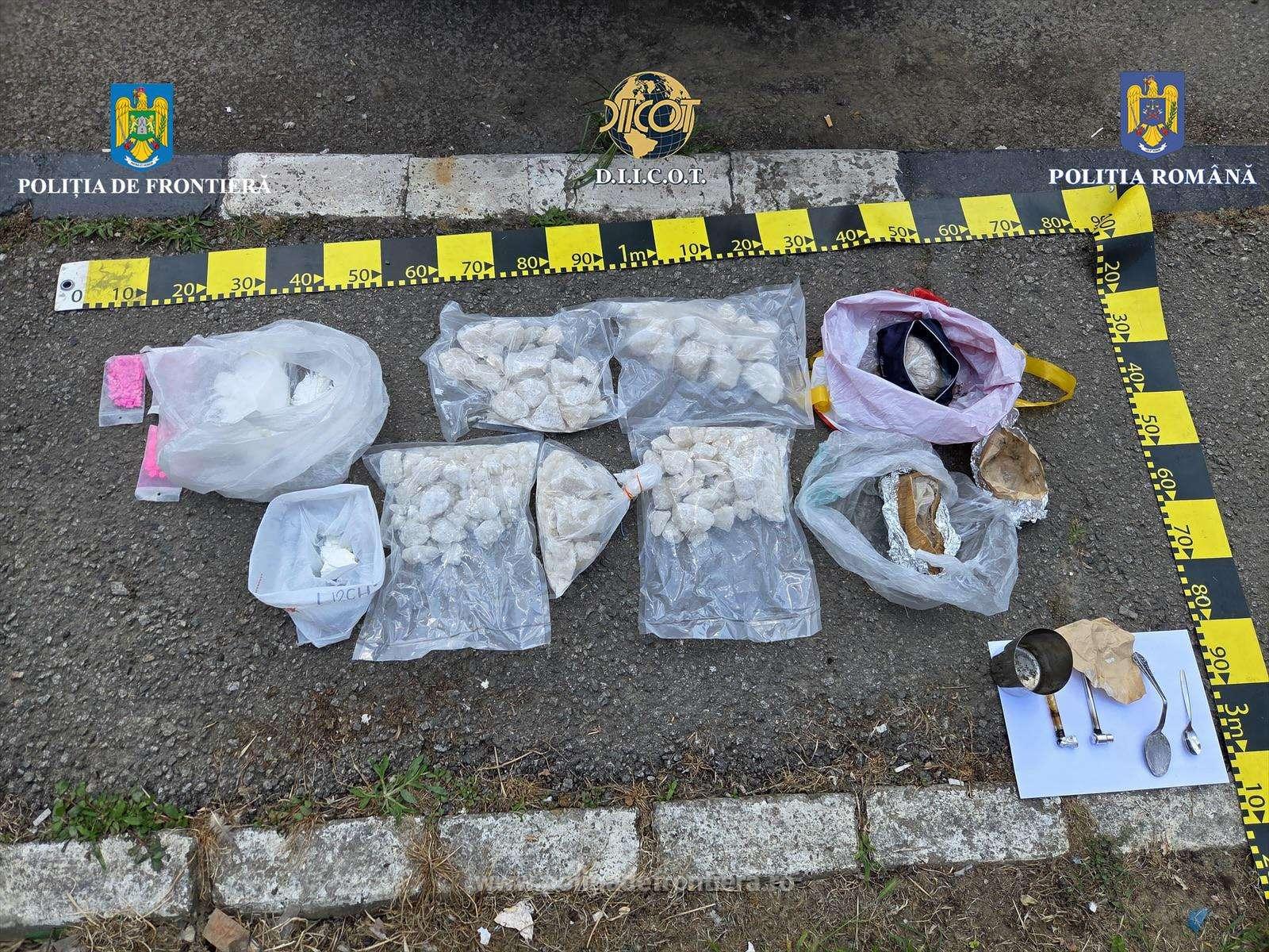 În urma percheziției autoturismului în care se aflau cei doi bărbați, cu vârste de 35 și 54 de ani, autoritățile au descoperit aproximativ 5 kilograme de substanță cristalină 2-MMC, 500 de grame de cocaină, 340 de grame de heroină, 250 de comprimate de ecstasy și mai multe tablete ce conțin alprazolam – un drog de risc.
