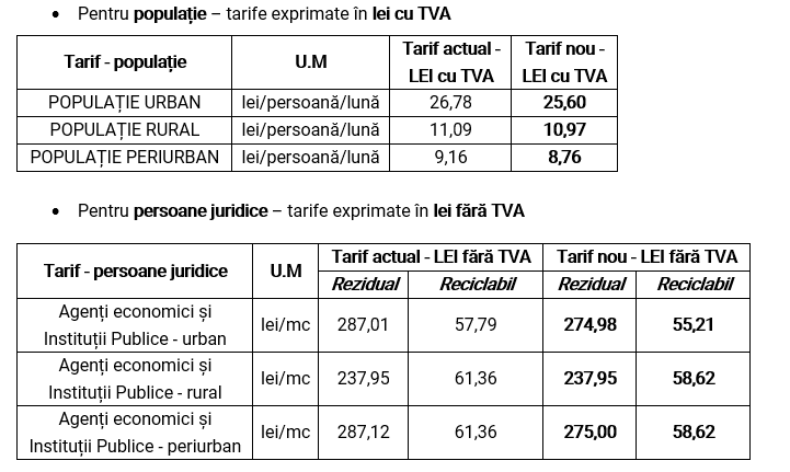 Totodată, utilizatorii serviciului de salubrizare persoane fizice, vor beneficia în continuare de reducerea determinată de recuperarea costurilor de gestionare a deșeurilor de ambalaje decontată de Organizațiile care Implementează Răspunderea Extinsă a Producătorilor – OIREP. Reducerea e diferențiată pe fiecare UAT în parte, în funcție de cantitățile de deșeuri reciclabile colectate. Reducerea acordată este pe o perioadă de 6 luni începând cu luna decembrie 2024.