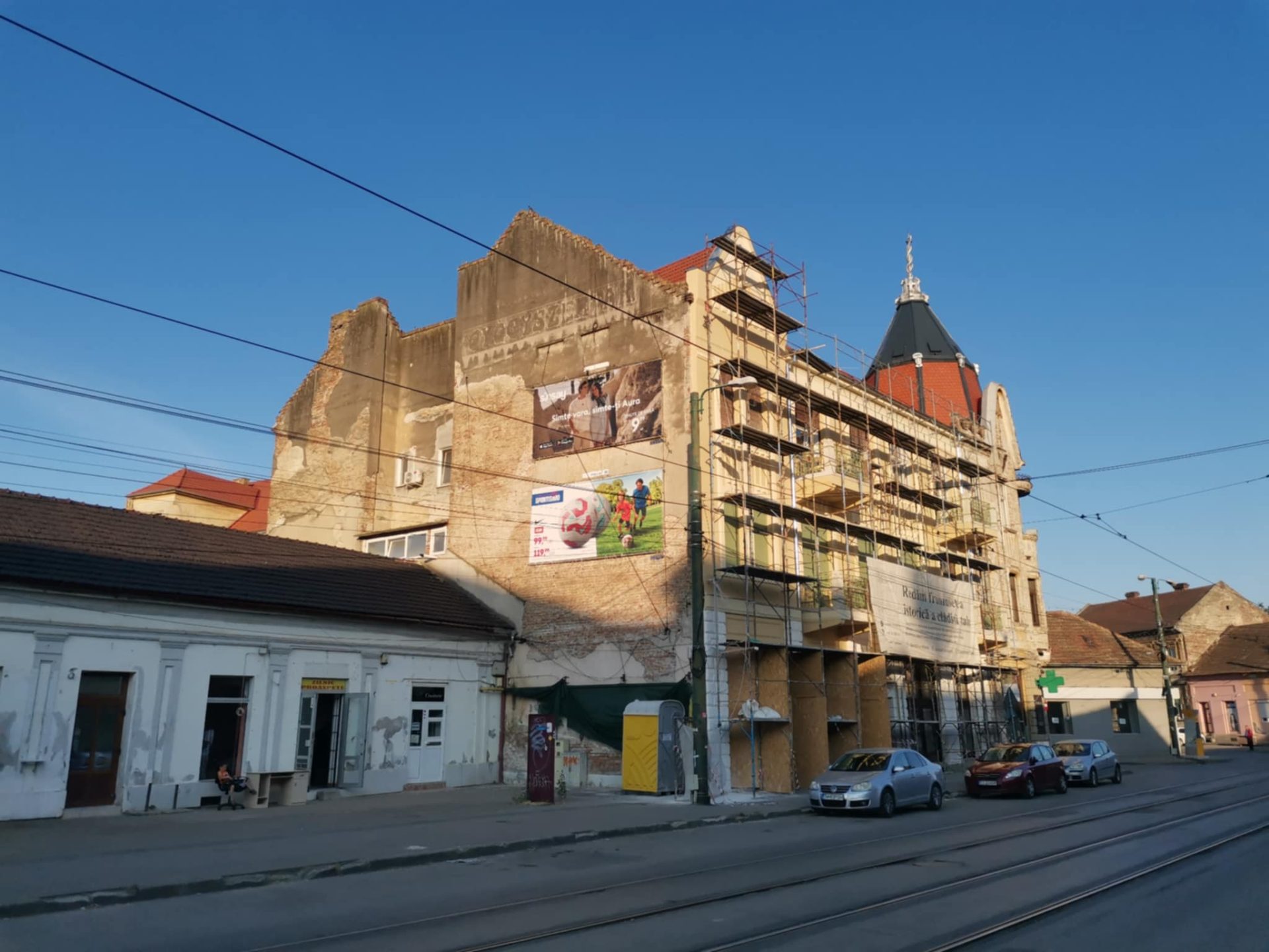 Deocamdată lucrările de restaurare se desfășoară pe latura dinspre liniile de tramvai.