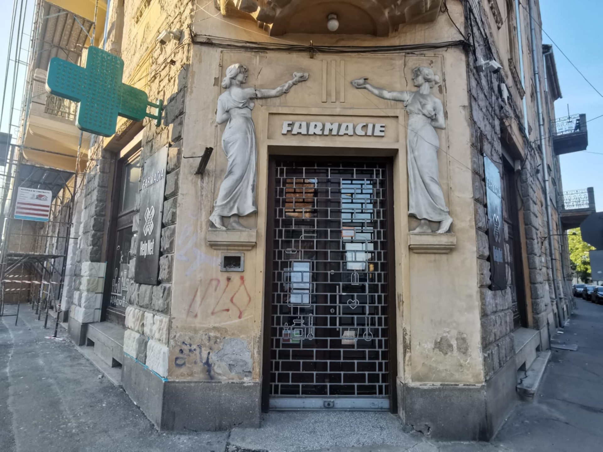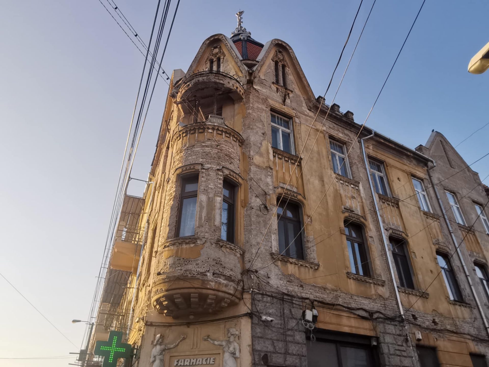 Și, tot ca un lucru inedit, pe calcanul dinspre canalul Bega se mai vede și astăzi vechea inscripție în limba maghiară: „gyógyszertár”, ceea ce înseamnă farmacie.