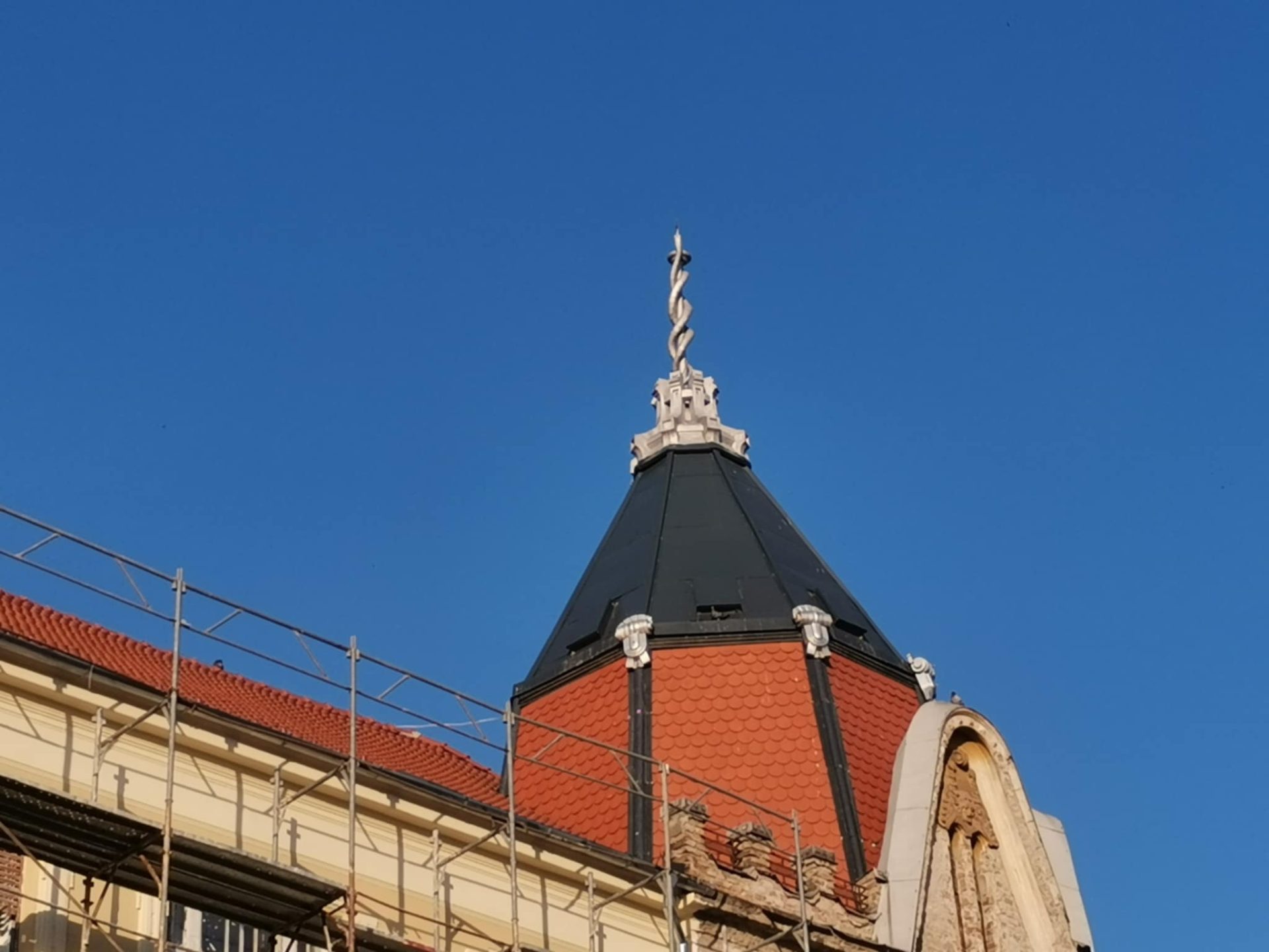Interesant este că, în toată istoria sa, clădirea a fost legată de farmaciști. Nu întâmplător, în vârful turnului se află Toiagul lui Esculap – un baston pe care este încolăcit un șarpe, simbol al științelor medicale, respectiv al medicinei și farmacologiei.