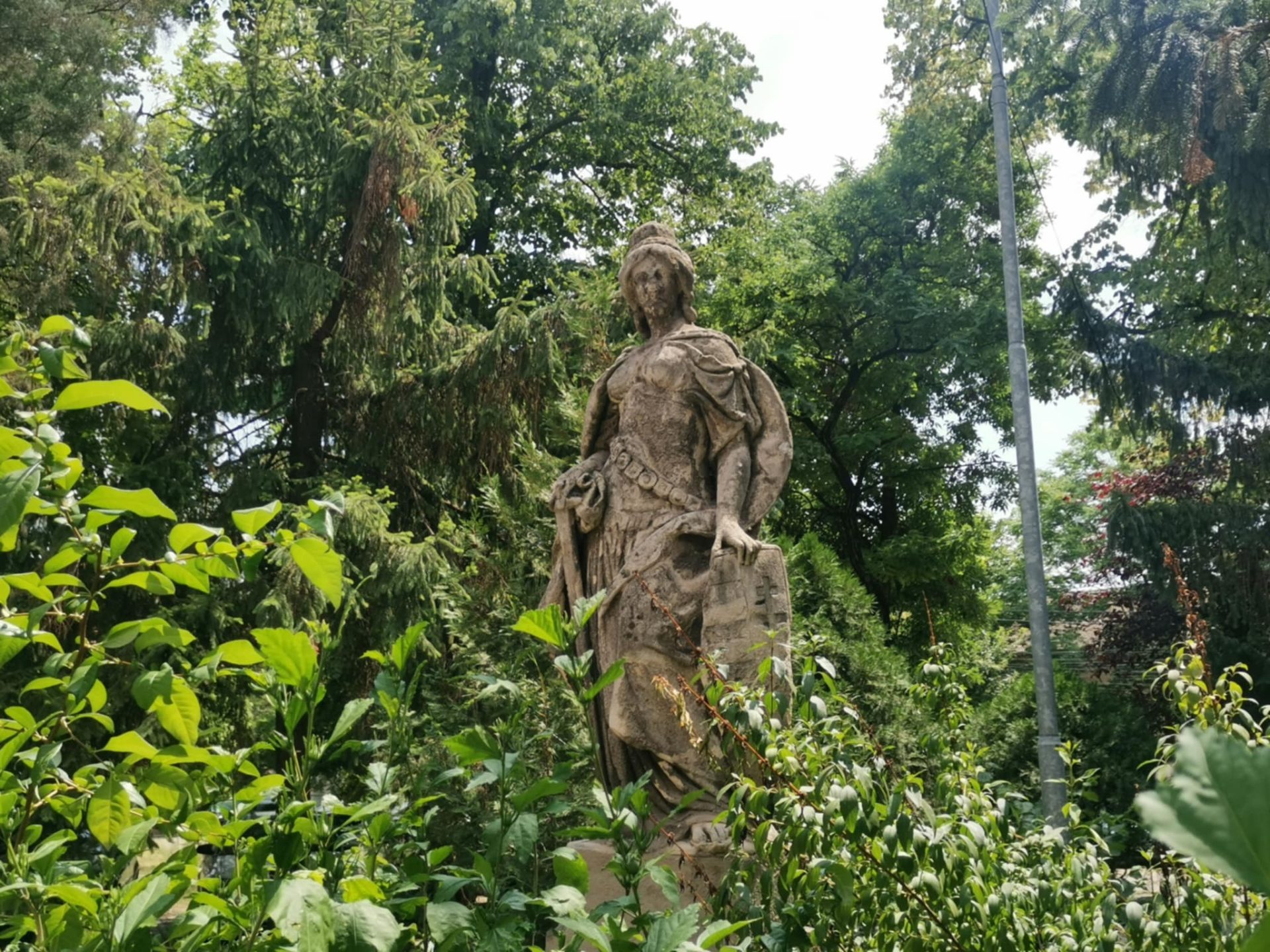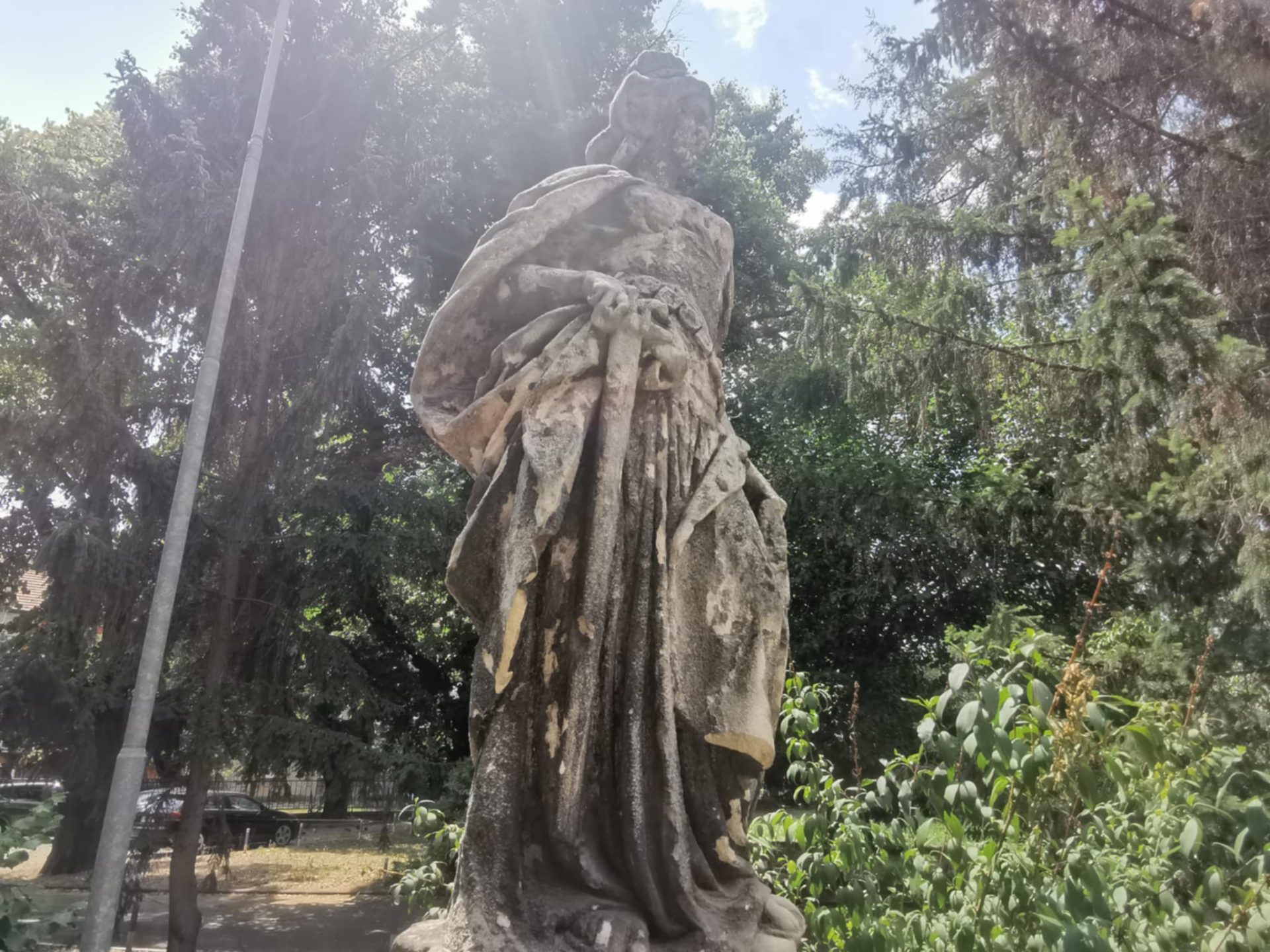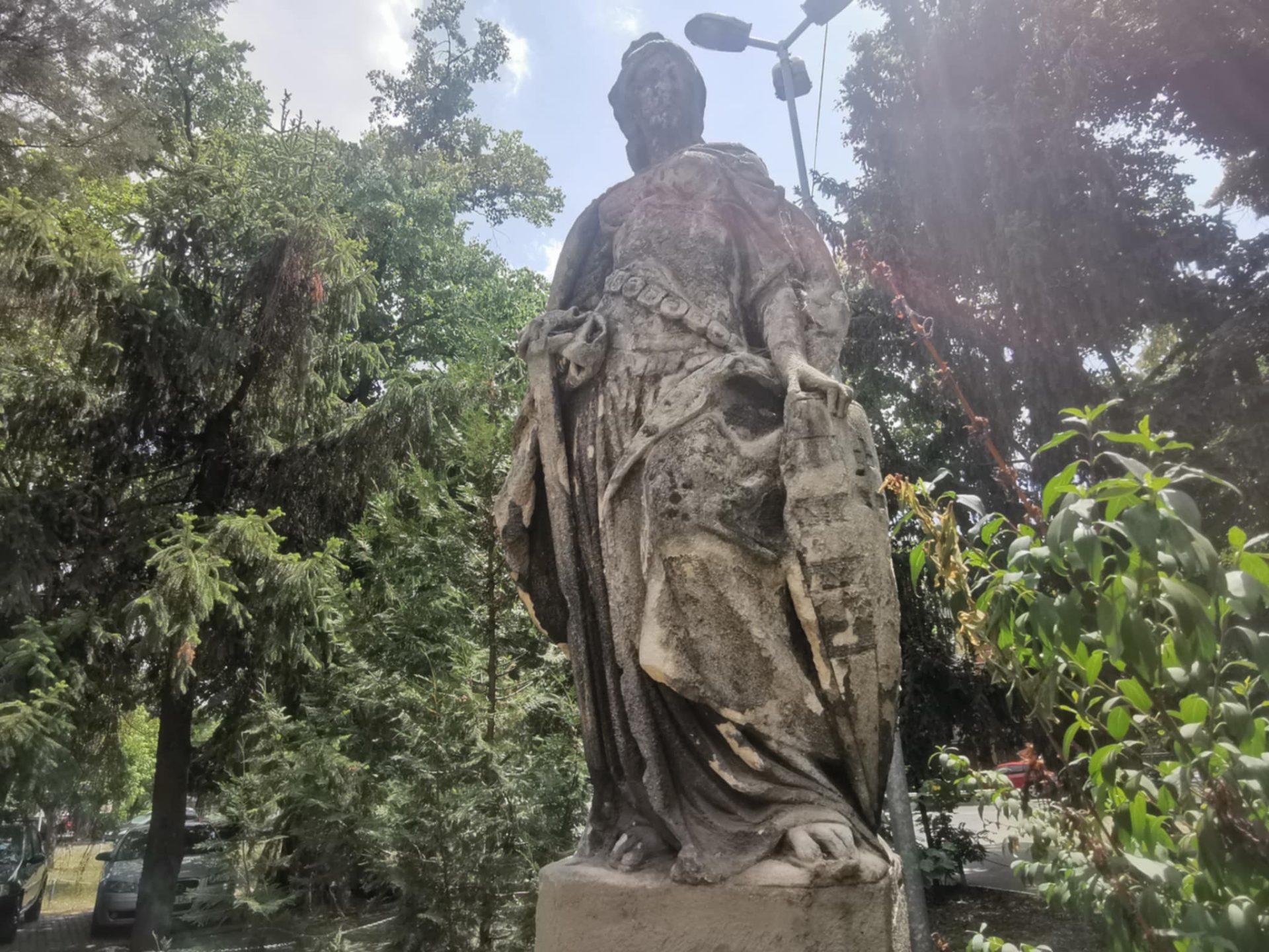 În fața fostei cantine MV a Politehnicii, cunoscută în anii de după Revoluție și pentru că acolo a funcționat discoteca Park Place, se află o statuie veche, despre care mulți se întreabă care este povestea ei, de când datează și, mai cu seamă, ce reprezintă. Din păcate, realizată dintr-un material poros, statuia se află într-o fază avansată de degradare și are nevoie urgentă de restaurare.