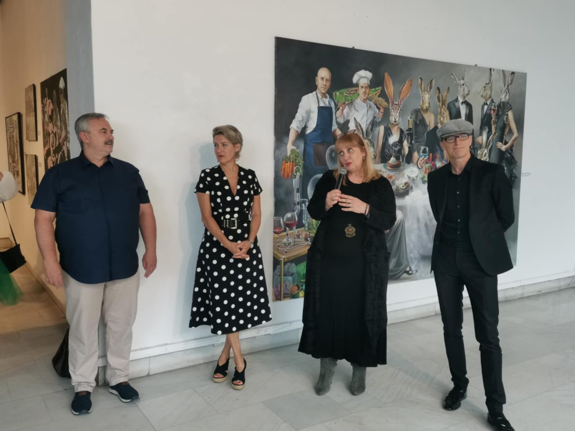 La vernisaj a fost invitat să ia cuvântul și conf. univ. dr. Gabriel Kelemen, care a vorbit despre dimensiunea critică și postmodernă a lucrărilor:
