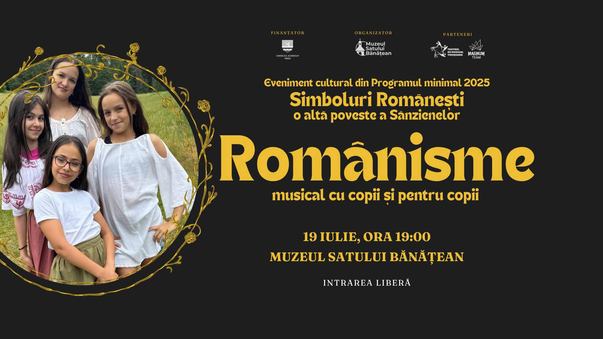 Expresii savuroase din graiul românesc și personaje legendare din mitologia autohtonă prind viață în „Românisme”, un musical inedit cu și pentru copii, care promite să farmece și părinții. Evenimentul are loc la Muzeul Satului Bănățean și este o invitație deschisă la redescoperirea frumuseții limbii și culturii românești.
