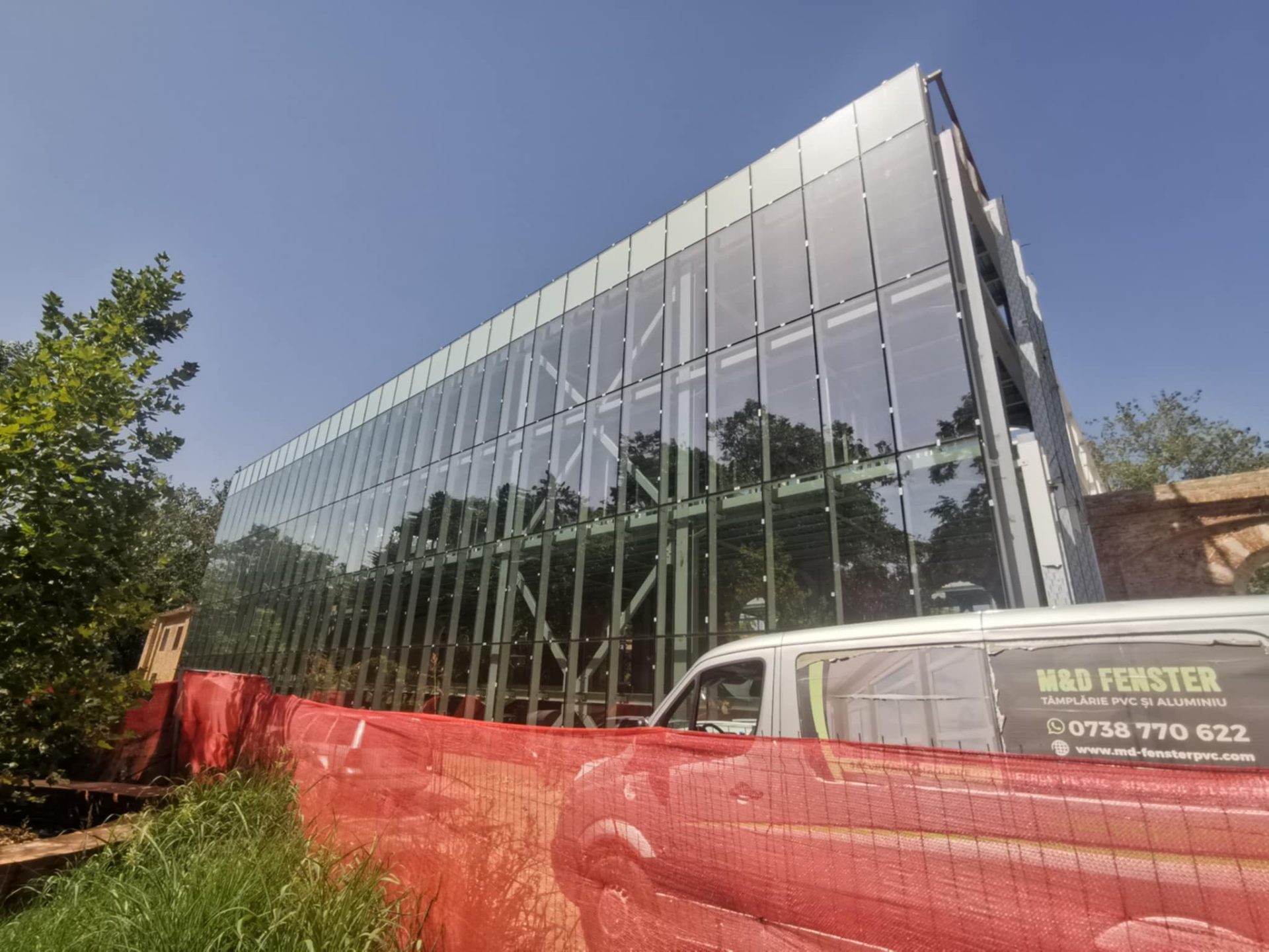 Lucrările de modernizare și extindere a Sălii 2 a Teatrului Național din Timișoara au ajuns la faza montării pereții de sticlă de pe schelele sarcofagului care vor acoperi fostul manej imperial. Practic s-au montat geamurile pe latura dinspre bulevardul IC Brătianu, iar acum firma care realizează această operațiune se apucă de treabă și latura cealaltă.