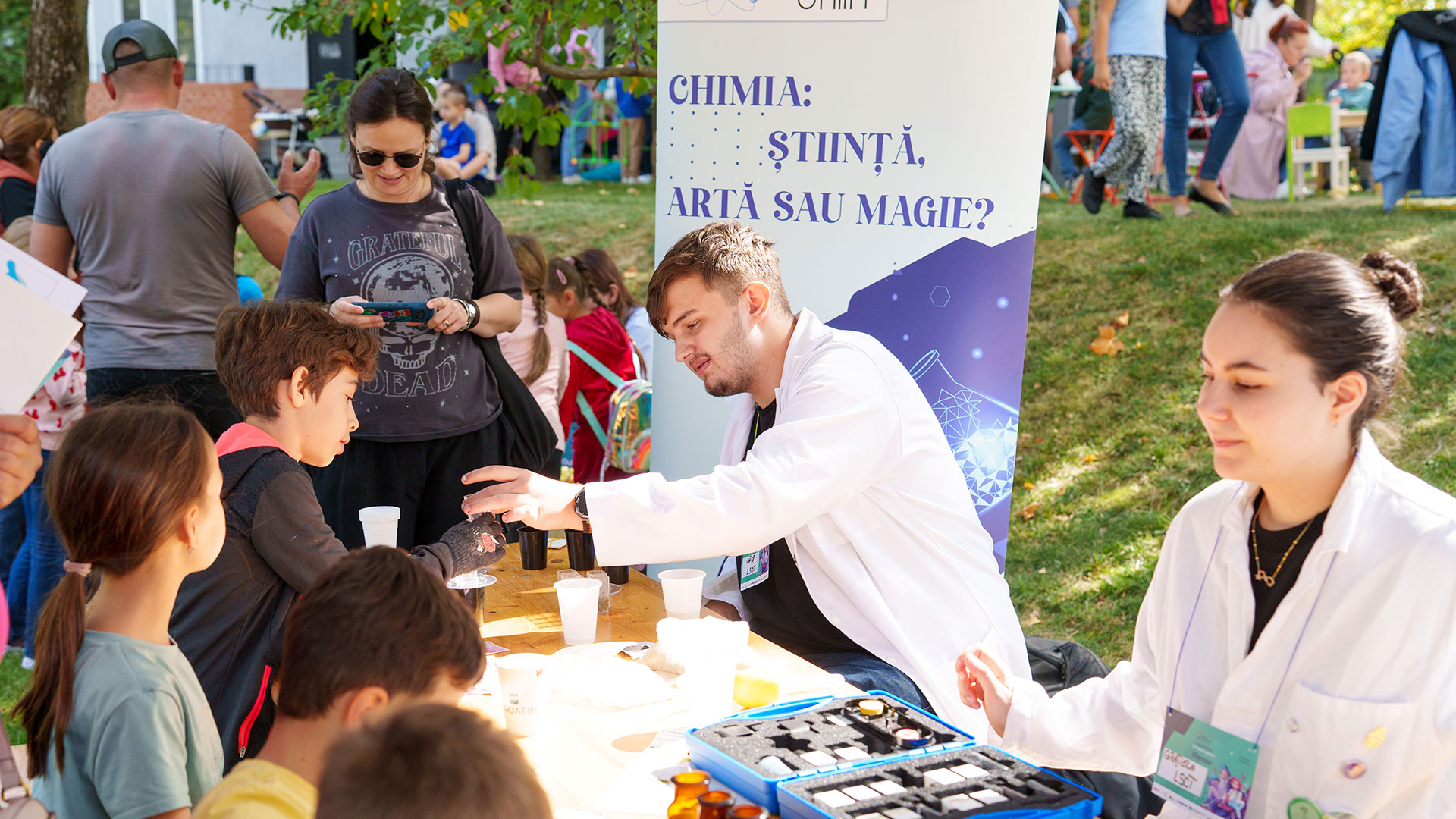 Atmosfera a fost una de explorare liberă, unde copiii și părinții au interacționat direct cu principii științifice complexe, transformate în activități practice și jocuri educative.