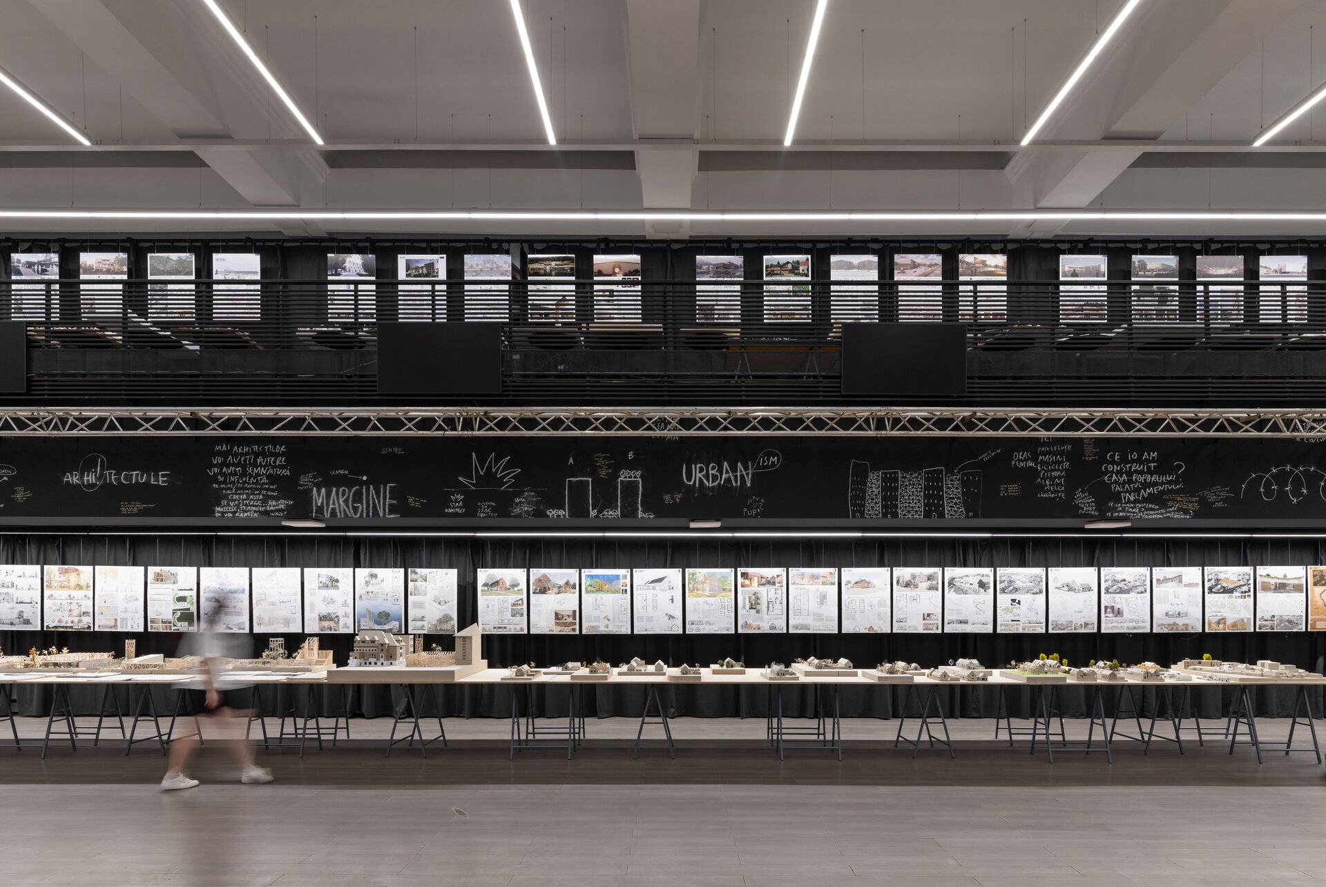 Drapajul negru în spatele caruia pot fi redescoperite ferestrele istorice de-zidite, însă ne-recondiționate încă, creează premisele unei cutii magice, în interiorul careia, arhitectura se poate expune și produce în toate formele ei. Cele două frize ale spațiului central, au fost comandate artistului Dan Perjovschi cu ocazia festivalului școlilor de arhitectură și surprind prin text și desen în cretă albă, întrebările și observațiile ce ar trebui/ putea fi scrise pe tablele oricărei școli de arhitectură din România”, au explicat cei de la ARChA.