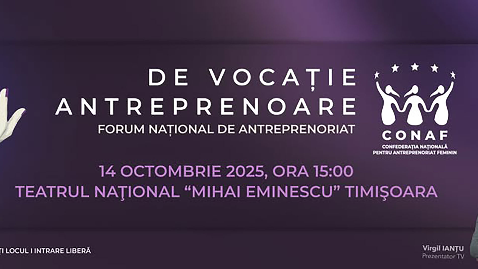 Pe 14 octombrie 2025, între orele 15:00 și 20:00, Teatrul Național „Mihai Eminescu” din Timișoara va fi scena unde vocația, inovația și forța antreprenorială a femeilor sunt celebrate. A VII-a ediție a forumului itinerant „De Vocație Antreprenoare” a ajuns în orașul unde cultura a fost mereu un act de rezistență și unde ideile au devenit modele de succes.