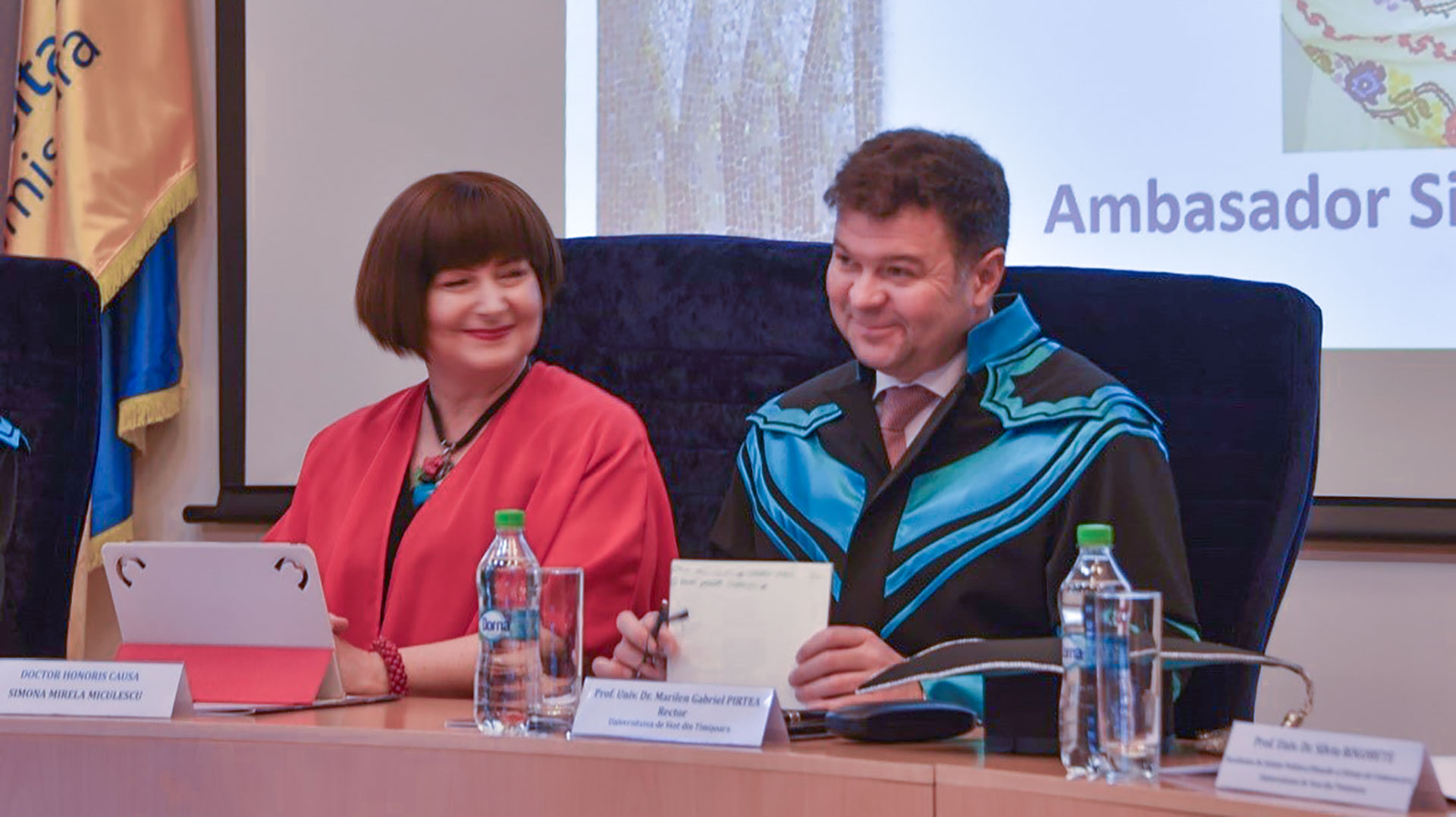 Relația strânsă dintre doamna ambasadoare și UVT a fost o constantă a acestui mandat. În calitate de Doctor Honoris Causa al universității, doamna Miculescu și-a oferit în 2019 un discurs de acceptare care rămâne un reper pentru tineri. „Nimic nu înlocuiește excelența, nici măcar succesul”, a afirmat ea, încurajând studenții să fie „lideri dinamici, creativi și responsabili azi, nu doar în viitor!”.