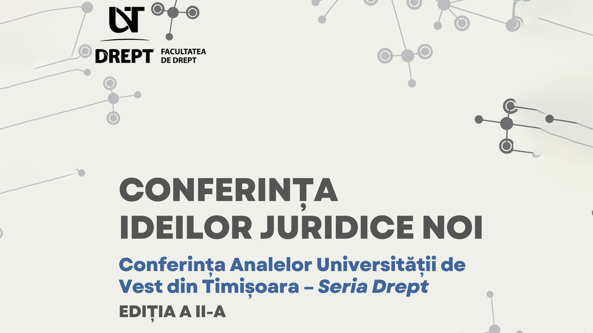 Facultatea de Drept a Universității de Vest din Timișoara organizează vineri, 14 noiembrie 2025, în Aula Magna UVT (Bd. Vasile Pârvan nr. 4), cea de-a doua ediție a „Conferinței ideilor juridice noi”, eveniment organizat sub egida Revistei Analele Universității de Vest din Timișoara – Seria Drept. Manifestarea reunește reputați profesori, cercetători, magistrați și practicieni ai dreptului, într-un format unic în peisajul academic românesc.