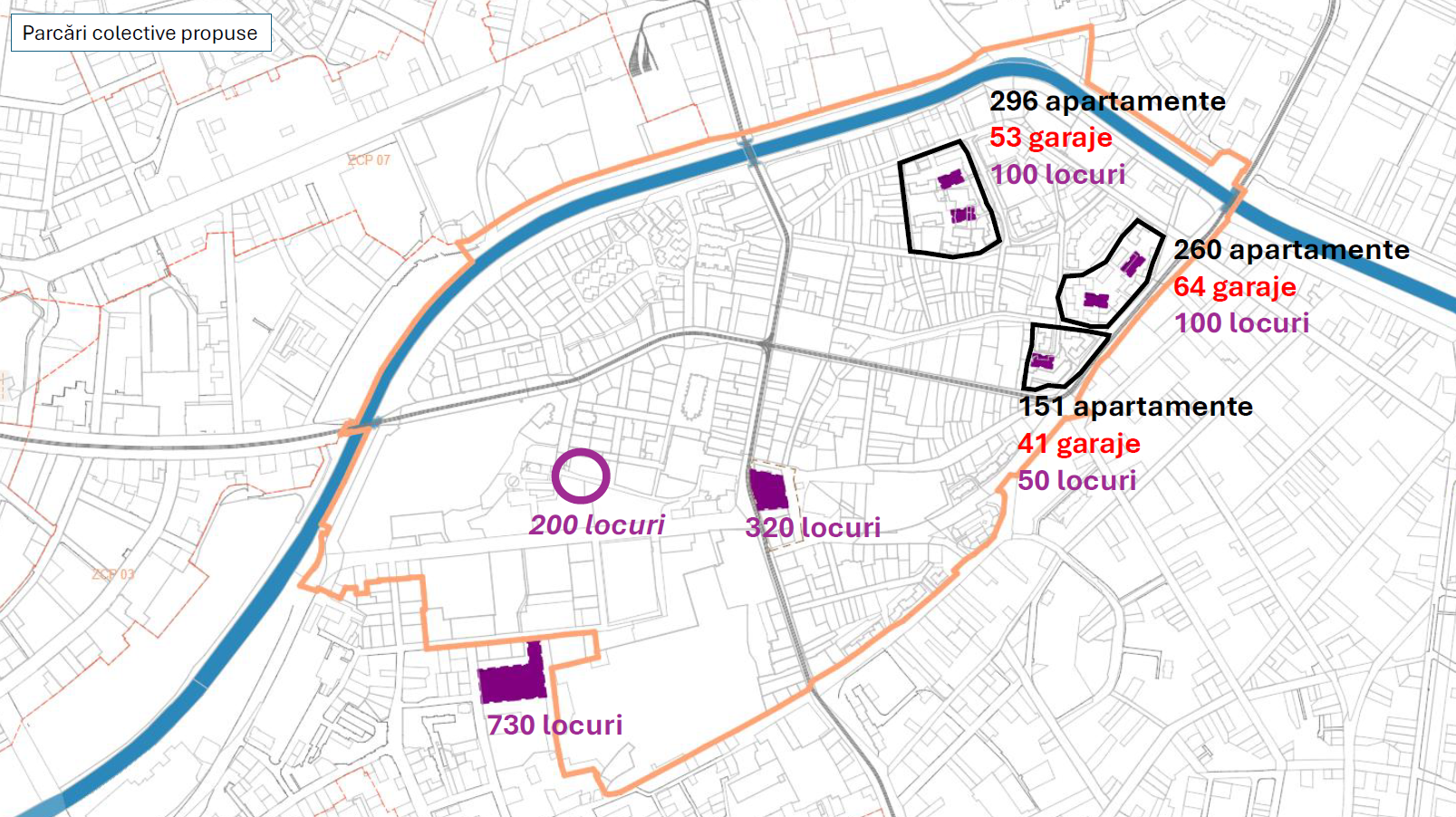 - Amenajarea a două parcări multinivel și transformarea vechilor garaje în parcări moderne;