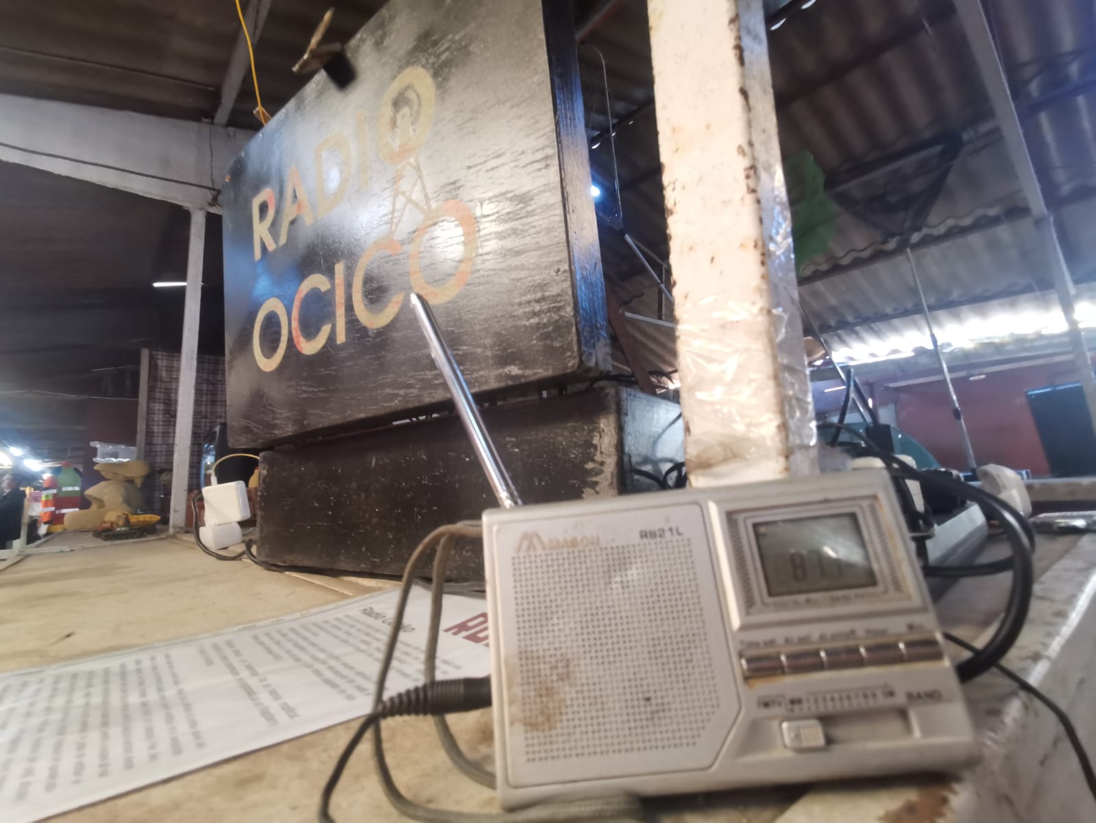Echipamentul radio a fost construit pe loc, din componente cumpărate chiar din piață, inclusiv modulatorul FM. Totul a încăput într-o valiză, transformată în studio mobil.
