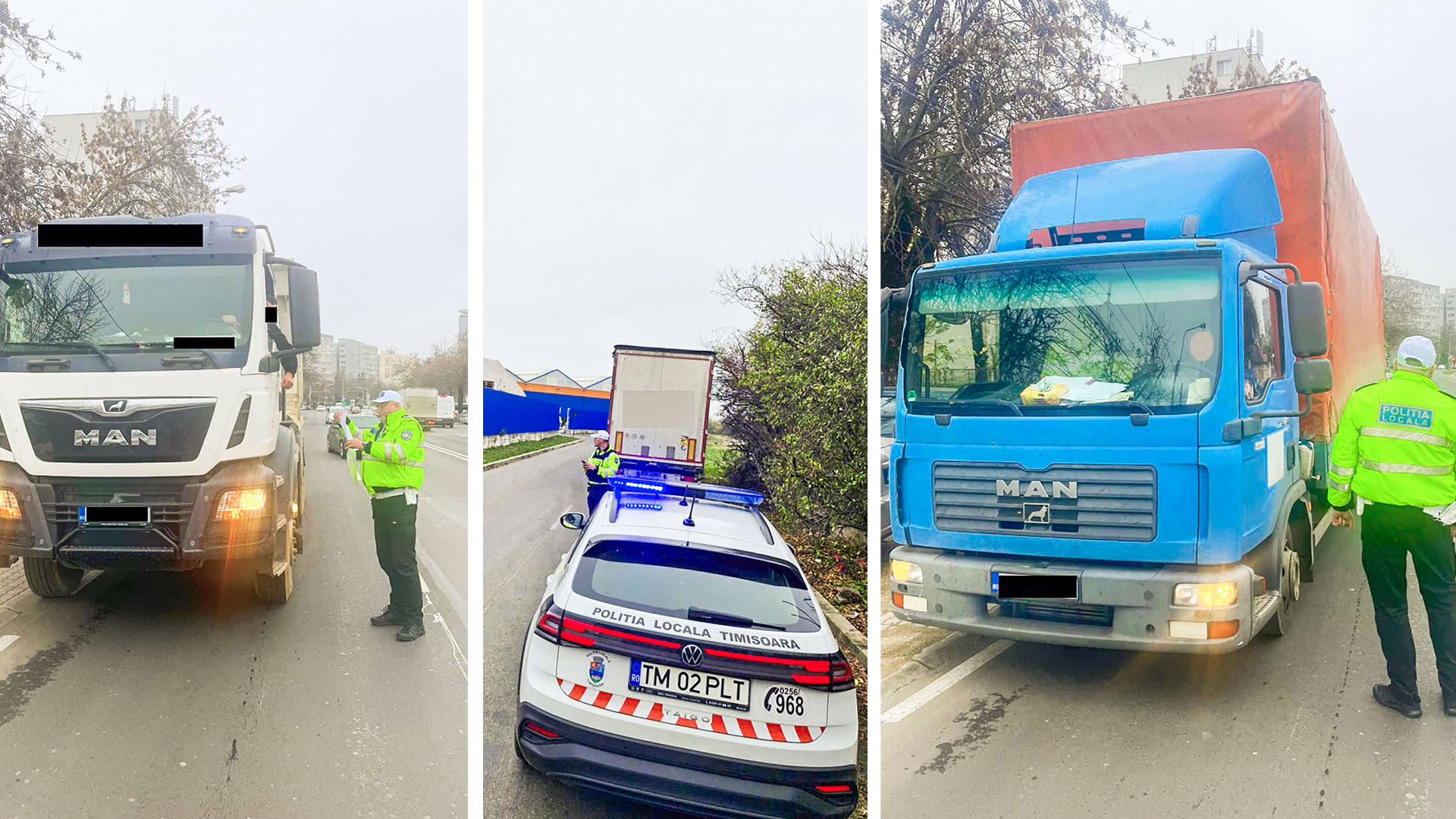 Polițiștii locali din cadrul Serviciului Siguranță Rutieră au desfășurat, în ultima săptămână, o amplă acțiune de control privind respectarea legislației de către conducătorii autovehiculelor de mare tonaj care circulă pe raza municipiului Timișoara. Verificările au vizat atât actele șoferilor, cât și respectarea semnificației indicatoarelor rutiere care limitează accesul camioanelor în oraș.