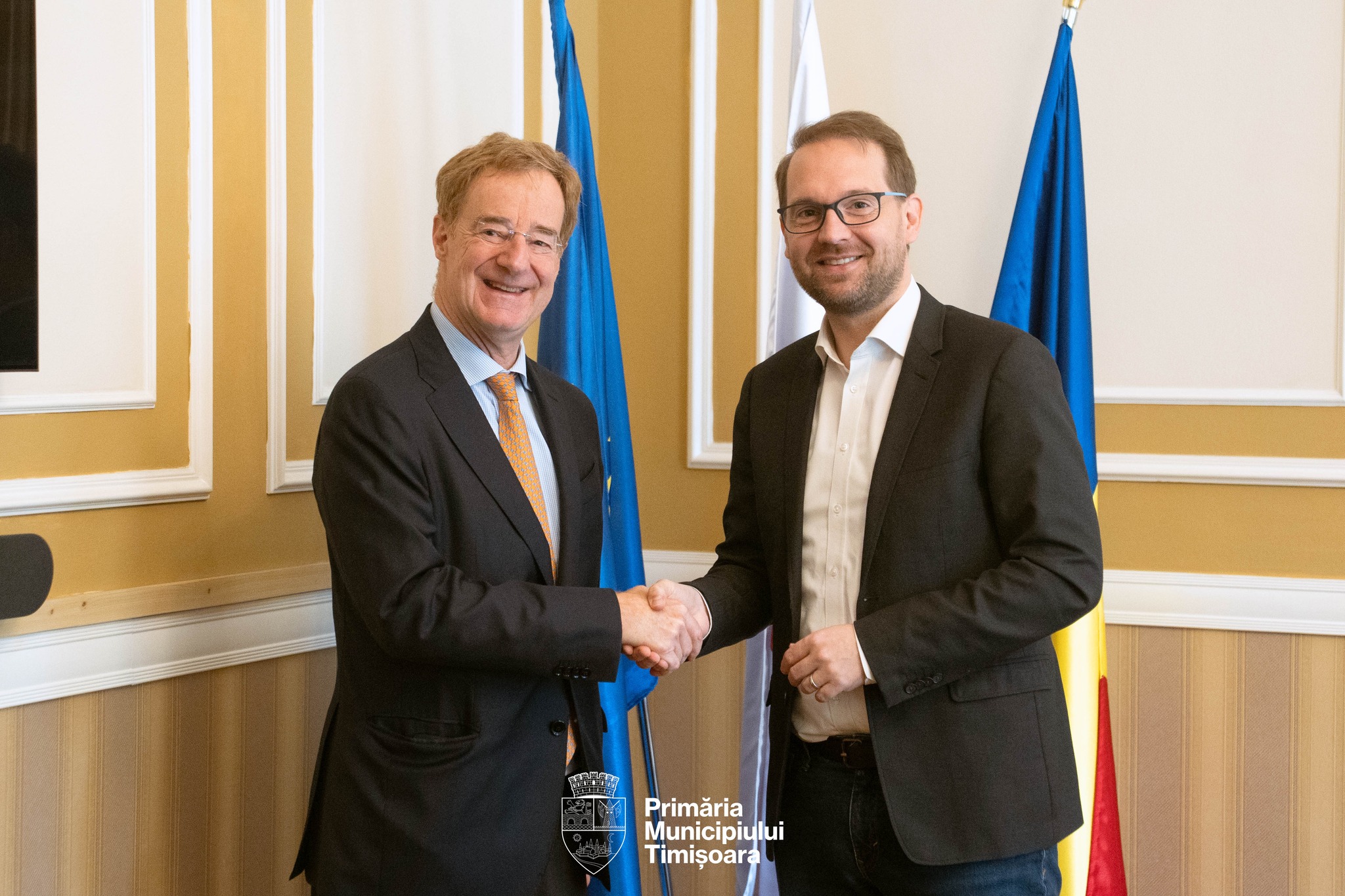 Primarul Timișoarei, Dominic Fritz, a primit vizita Excelenței Sale John Cornet d’Elzius, Ambasadorul Belgiei în România, în cadrul unei întâlniri oficiale dedicate explorării oportunităților de cooperare între Timișoara și mediul economic belgian. Discuția a avut loc într-un context favorabil dialogului internațional, orașul consolidându-și în ultimii ani profilul de hub european al inovării, culturii și investițiilor.