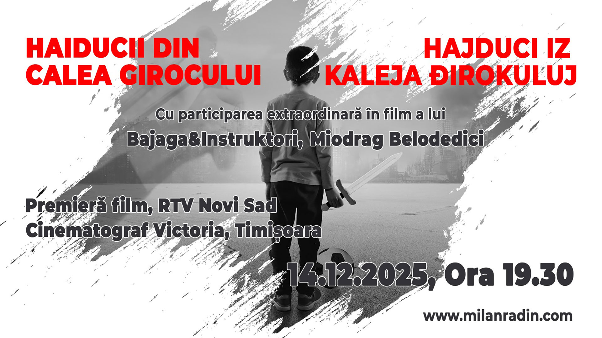 Cinematograful Victoria din Timișoara găzduiește, pe 14 decembrie 2025, premiera internațională a filmului „Haiducii din Calea Girocului”, o producție Serbia 2025, cu durata de 1h 35min, realizată în limba română și sârbă și subtitrată în română. Docu-ficțiunea, inspirată din cărțile timișoreanului Milan Radin, este regizată de Milica Stojanov și Dorela Iencea, echipă a televiziunii TV Voivodina Novi Sad, și beneficiază de participarea extraordinară a legendelor Miodrag Belodedici și Momčilo Bajagić Bajaga.