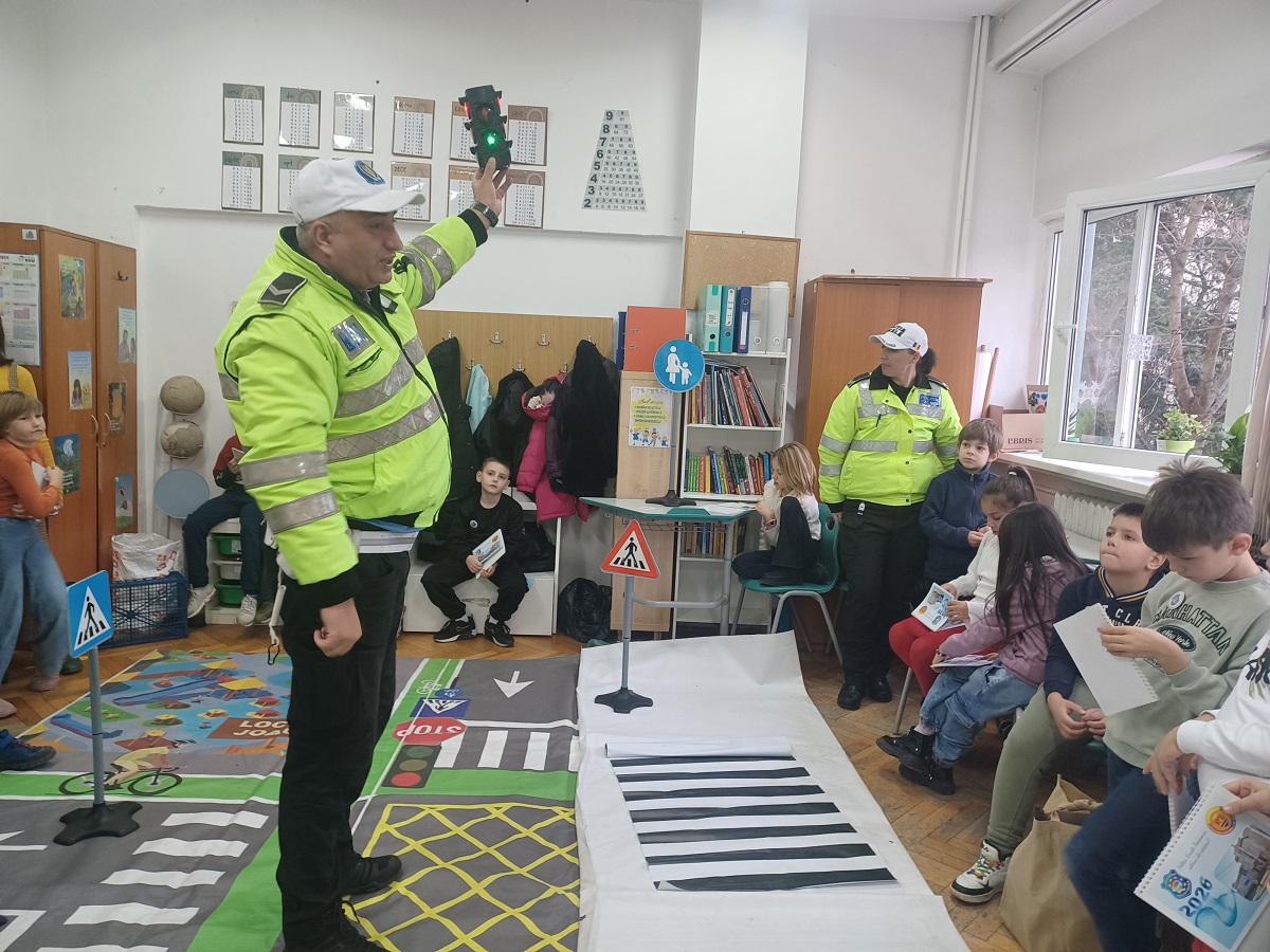 De asemenea, copiii au învățat semnificația indicatoarelor rutiere, modul de funcționare al semafoarelor și principalele reguli care contribuie la prevenirea accidentelor în trafic. Chiar dacă unii dintre elevi aveau deja cunoștințe de bază în acest domeniu, activitățile s-au transformat într-un dialog interactiv, micuții manifestând interes și adresând numeroase întrebări.