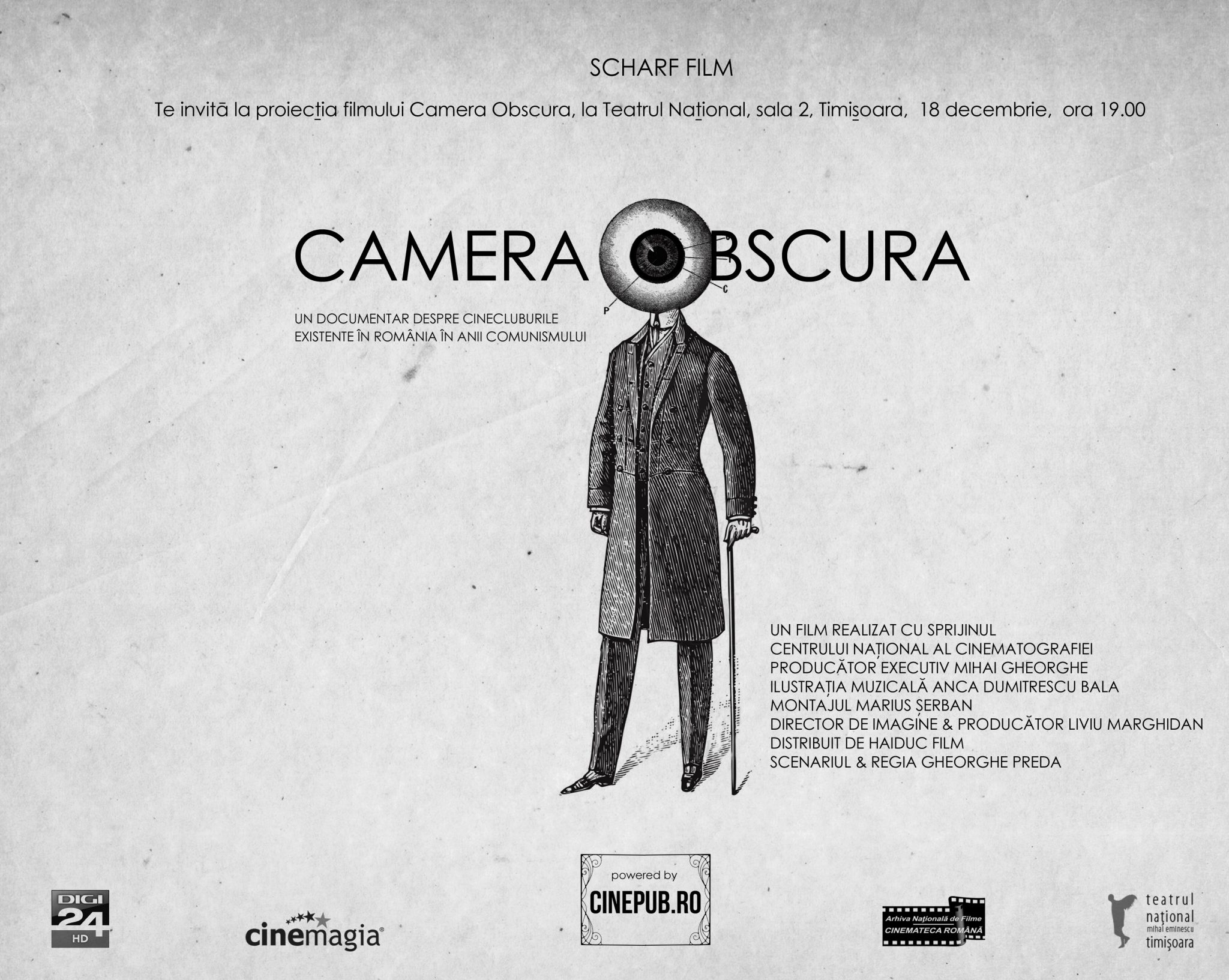 Camera Obscura este un film documentar despre cinecluburile existente în România în anii comunismului. A face film de amator în acei ani era o aventură. A încerca să oferi o alternativă culturii oficiale a filmului romanesc din acei ani, osificat într-o ideologie primitivă, putea fi un demers periculos, căci ochiul vigilent al Securității putea pulveriza cariere sau chiar distruge vieți. Cel mai important cineclub al acelor ani era Cineclubul CFR Timișoara, care funcționa pe lângă Regionala de căi ferate. Filmele făcute aici nu erau de regulă situate “pe linia” ideologică atât de necesară supraviețuirii într-o zonă culturală. Erau mici bijuterii cinematografice provocatoare și insolente la adresa bunul simț comun, creative în cel mai înalt grad, și cumva dătătoare de speranță. Speranța că într-o zi libertatea, cuvânt atât de abstract în acele vremuri, va putea fi cândva posibilă. Aici au lucrat oameni talentați și dedicați ca Iosif Costinaș, Vasile Moise, Ioan Cochinescu, Tatiana Costinaș, Gheorghe Șfaiter, Lucian Ionică, Mihai Zegrea, Nicolae Lengher, Decebal Nedelea, Vasile Sepi, Mircea Radu. Ei au crezut cu fanatism în rolul filmului în viața comunității și au dat nu o dată prin filmele lor dovada de un simț civic mult evoluat față de standardele epocii.