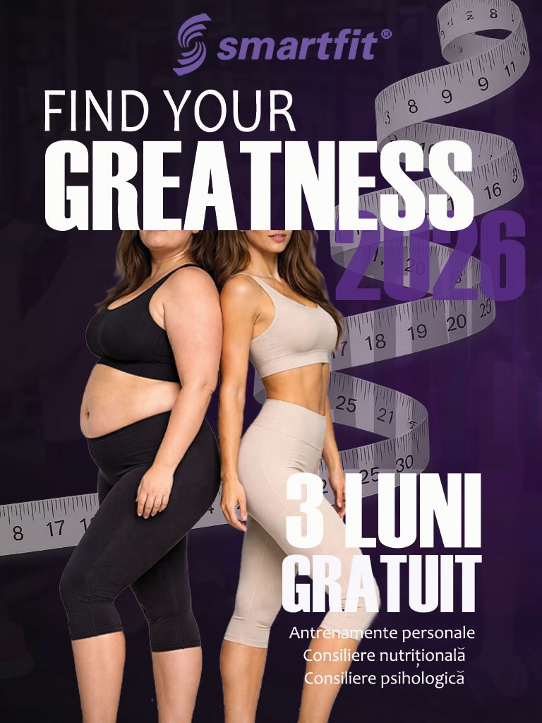 Smartfit lansează cea de-a noua ediție a programului „Find Your Greatness”, proiect dedicat comunității din Timișoarași Arad, prin care oferă gratuit timp de trei luni antrenamente personalizate, consiliere nutrițională și suport psihologic pentru persoanele care doresc o schimbare reală în viața lor.