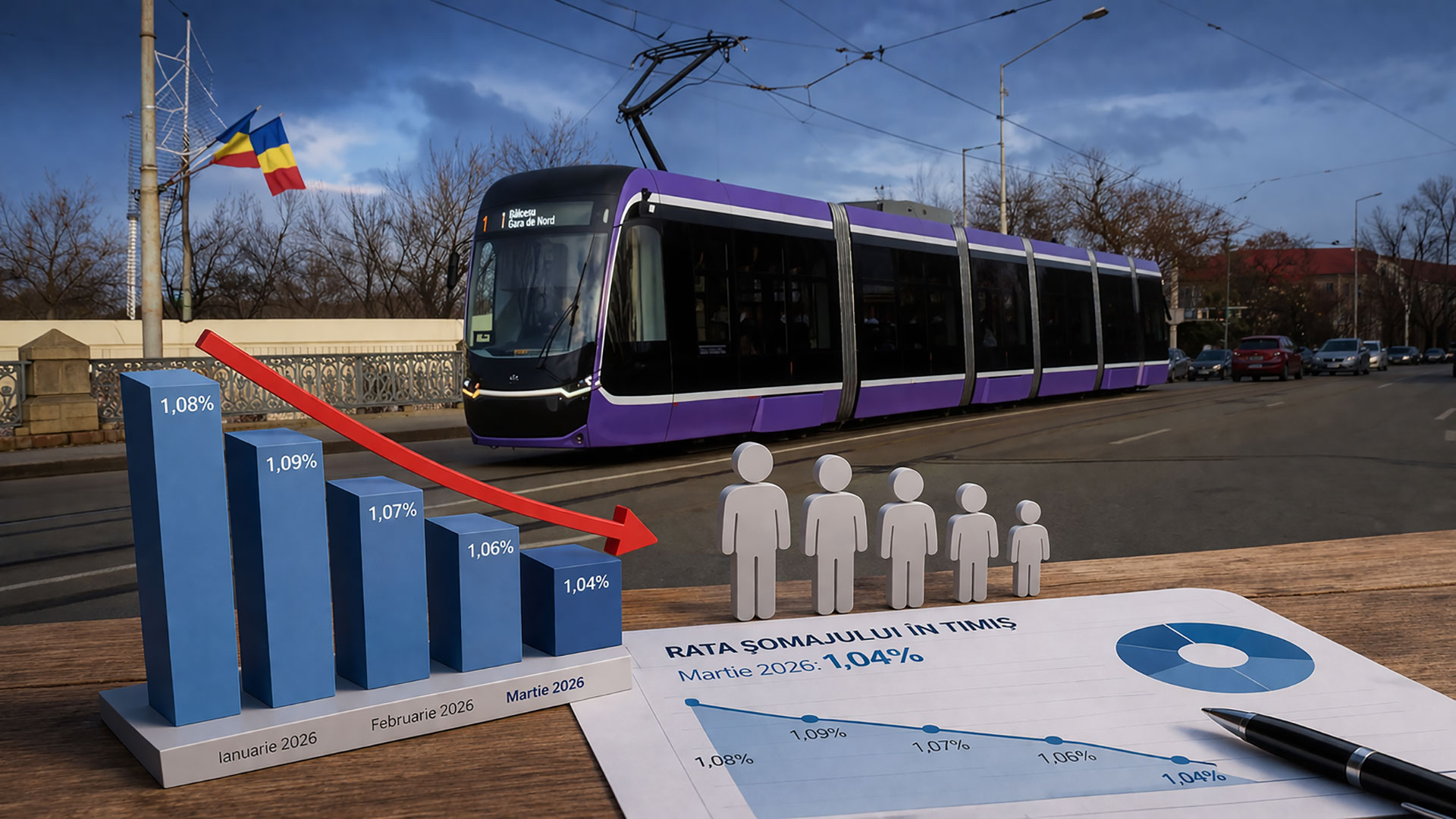 Rata șomajului în județul Timiș a ajuns la 1,04% la finalul lunii martie 2026, în scădere cu 0,05 puncte procentuale față de luna precedentă și sub nivelul de 1,08% înregistrat la începutul anului. Datele indică o diminuare a numărului total de șomeri cu 182 de persoane, în timp ce 599 de persoane au fost încadrate în muncă în aceeași perioadă.