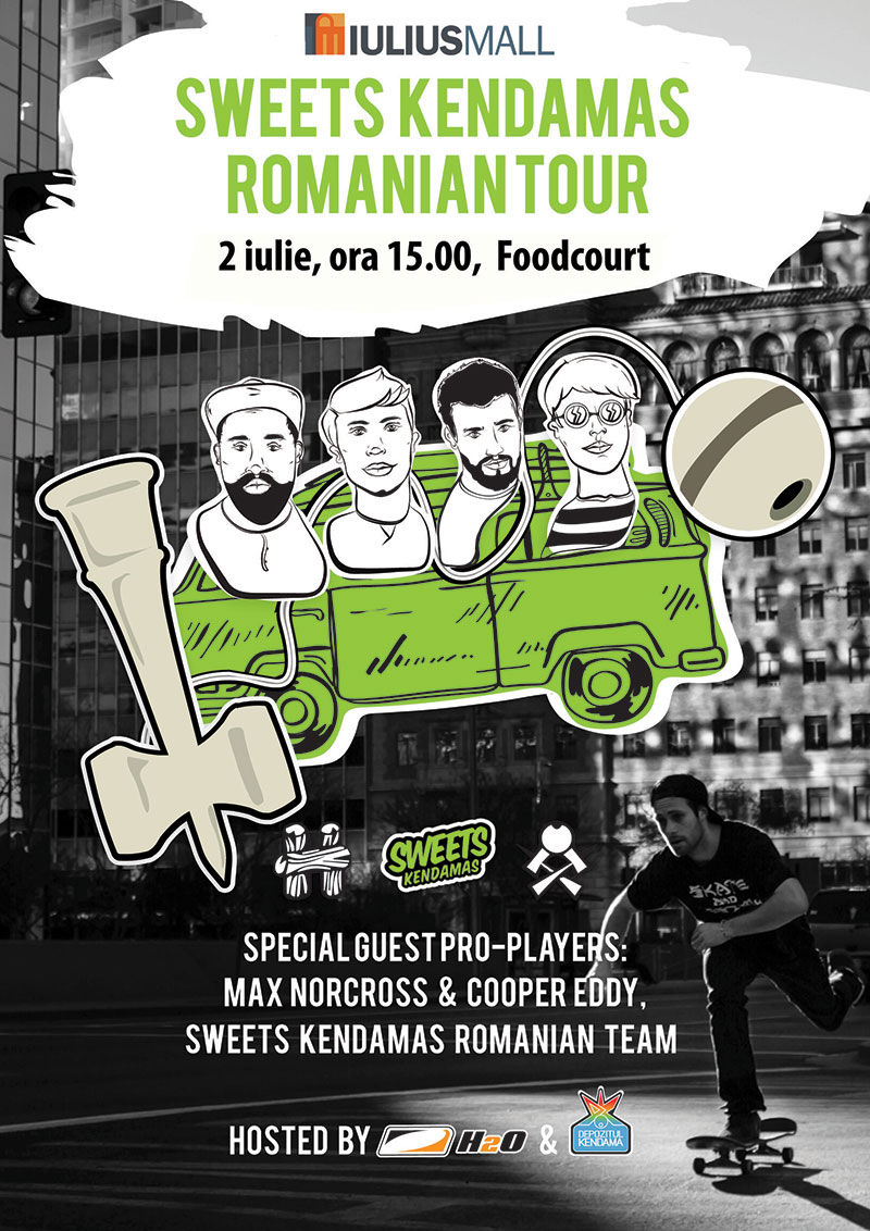 Turneul SWEETS KENDAMAS ROMANIAN TOUR include nouă oraşe din România, precum Bacău, Iaşi, Suceva, CluJ-Napoca, Timişoara, Piteşti, Braşov, Bucureşti şi Constanţa.