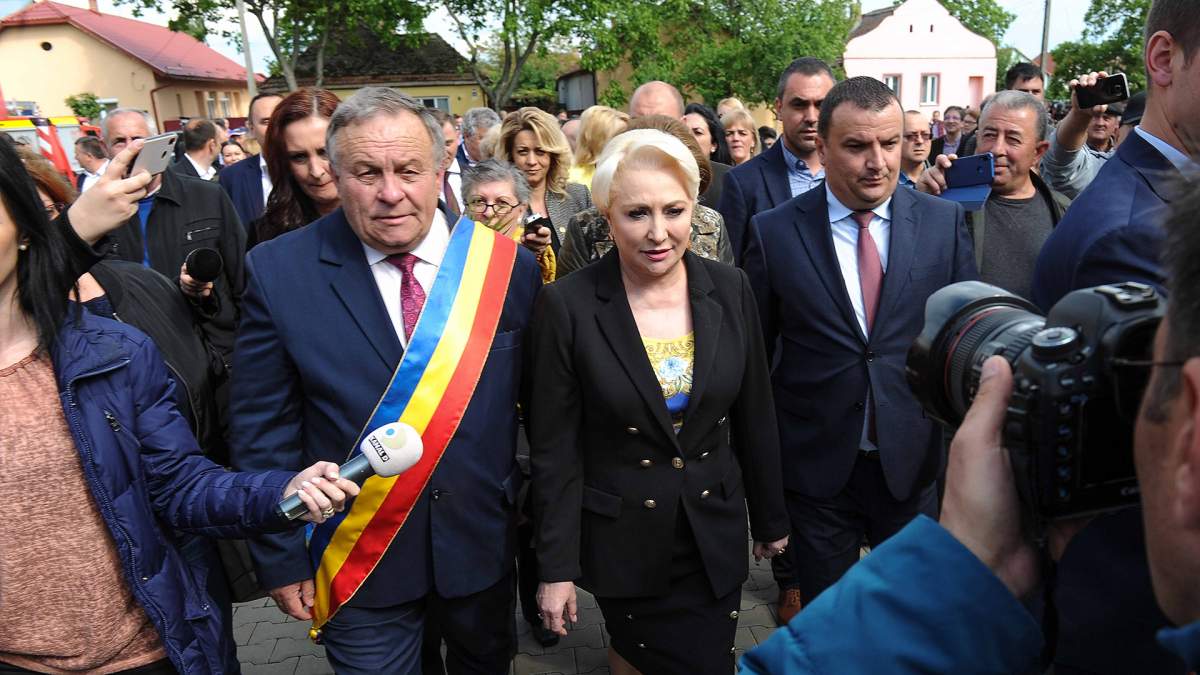 Deși sosirea era anunțată pentru ora 15:30 premierul a ajuns în localitate în jurul orei 16:15 și a fost întâmpinată de șeful CJT Călin Dobra, alături de primarul comunei, deputați și senatori de Timiș dar și alți membri din organizațiile de partid locale și județene. Din partea localnicilor doamnei Dăncilă i-a fost oferită tradiționala pâine cu sare și după o scurtă baie de mulțime premierul a intrat în cabinetul primarului din Giarmata, Virgil Bunescu, pentru o discuție de aproximativ 10 minute. La 70 de metri distanță. un grup de protestatari strigau lozinci anti-PSD, însă scandările lor au fost acoperite de boxele audio puse de autorități la intrarea în clădire-boxe în care se răsuna melodia Conquest of Paradise a formației Vangelis.